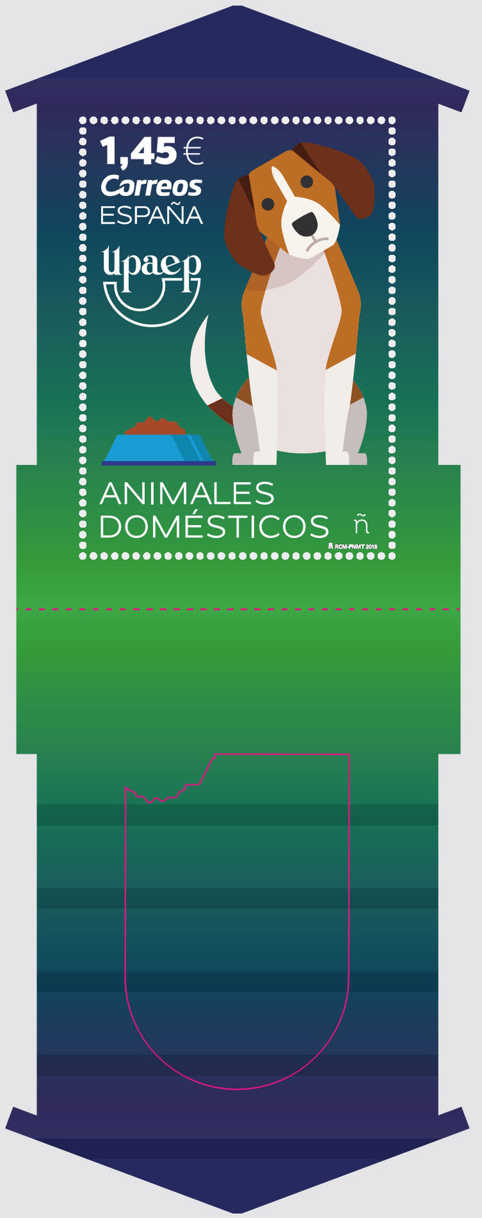 El sello que emite España, tiene un diseño original, con un troquel en forma de caseta de perro. Al desplegarlo, encontramos una ilustración de este animal doméstico que es la mascota más popular en los hogares españoles.