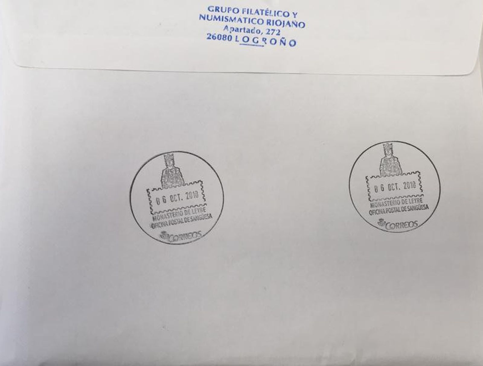 2018-09-28. 200 Aniversario nacimiento Cosme García Sáez. Carta de Logroño. Envío. Reverso. Baja.jpg