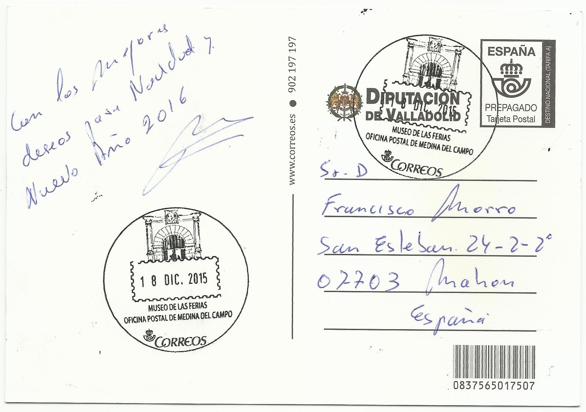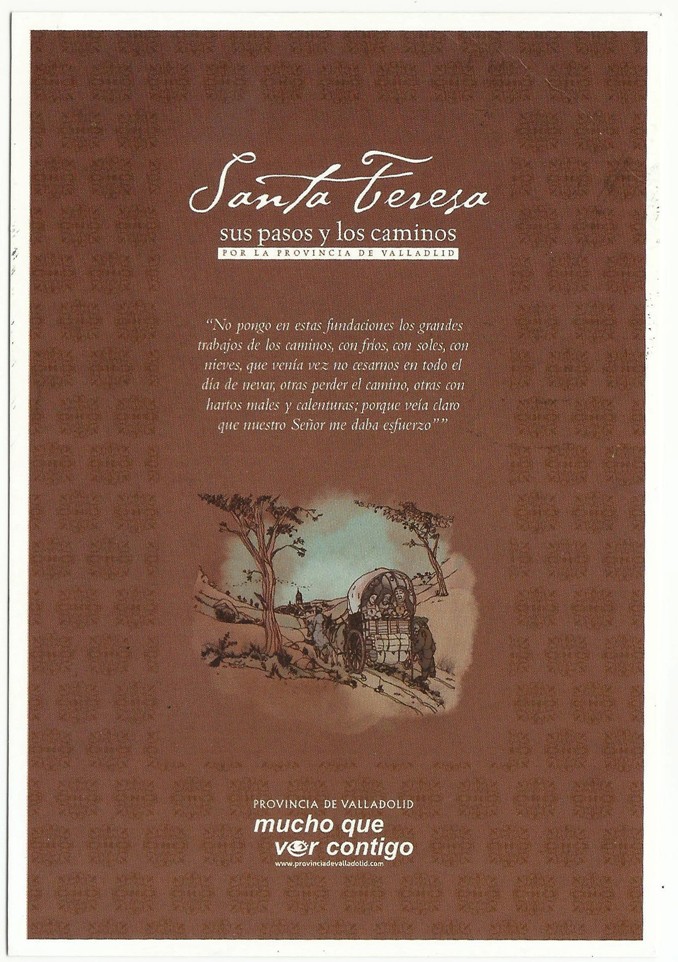 Creo será de interés esta tarjeta prefranqueada (entero postal) que he recibido de un amigo Felicitándome la Fiestas (aprovecho y hago lo mismo a tod@s) de iniciativa privada (Diputación de Valladolid) y motivo Santa Teresa de Jesús, pero hecha por Correos este año 2015.