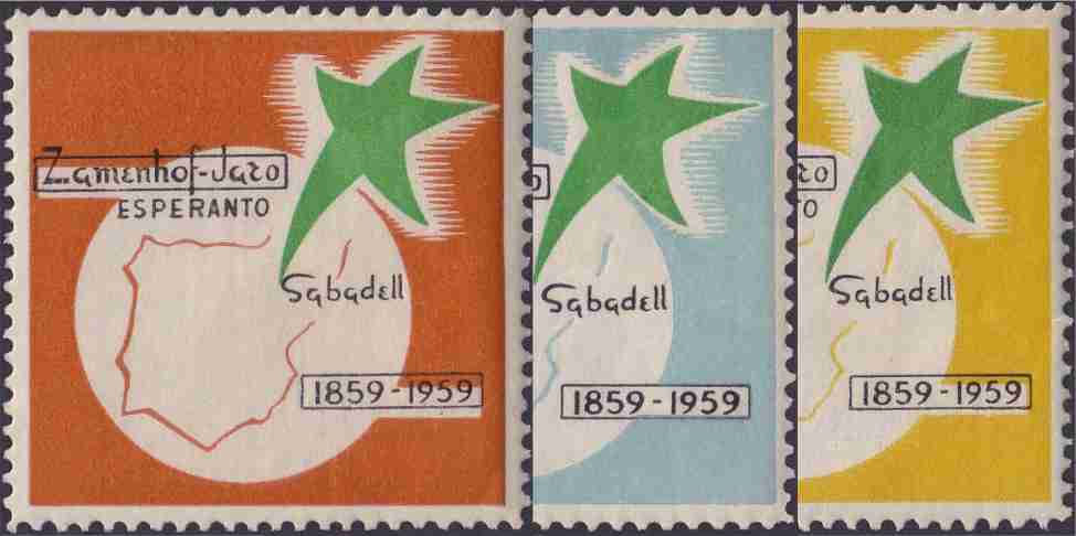 La viñeta de Sabadell del Centenario del inventor del Esperanto, en color teja, papel muy grueso (casi cartulina) i sin dentar.
