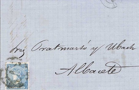 Carta entera mat. Talavera en azul (13/08/1870)