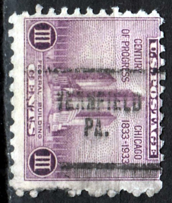 El estado está claro: Pensilvania, pero no tanto la localidad, lo más similar a lo que se veo sería VERNFIELD que en Google maps me aparece como una aldea de Lower Salford, condado de Montgomery 19438”, pero cuando busco ese código postal me aparece como de Harleysville, (otra aldea de Lower Salford), y de Vernfield, pudiera ser por su proximidad.