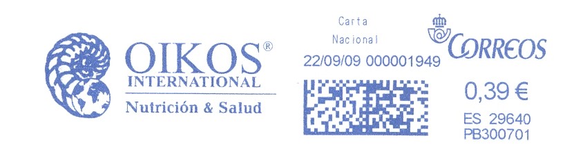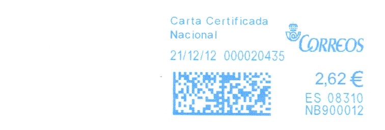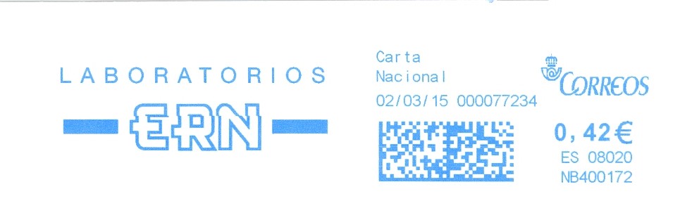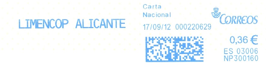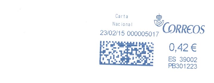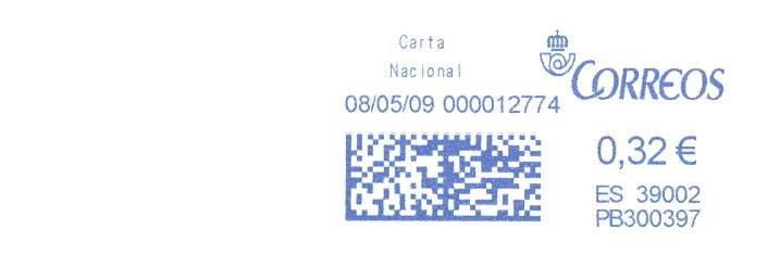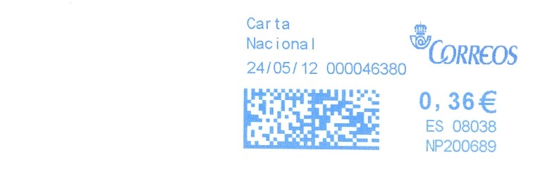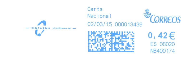 Esta impronta y la anterior corresponden a Industrial Farmacéutica Cantabria, y no sé yo si no serán las misma máquina a la que se la ha cambiado la matricula por haber tenido que modificar el software, como ya pasó en 2012 con las máquinas de Neopost.