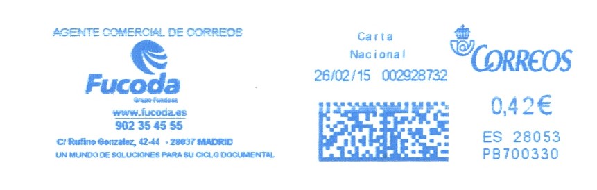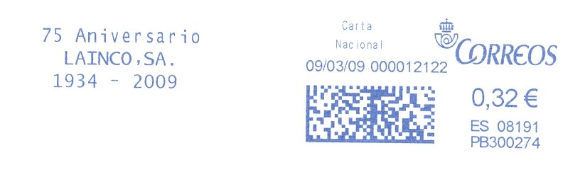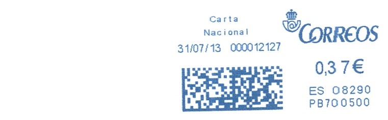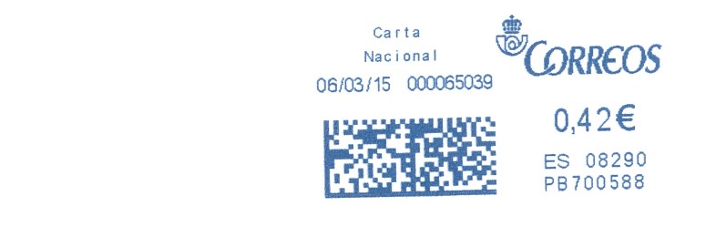 Otra máquina que cambia de ubicación, en este caso no cambia el código postal al ser el mismo para todas las empresas de mailing de la provincia de Barcelona. Anteriormente ubicada en Viladecans.