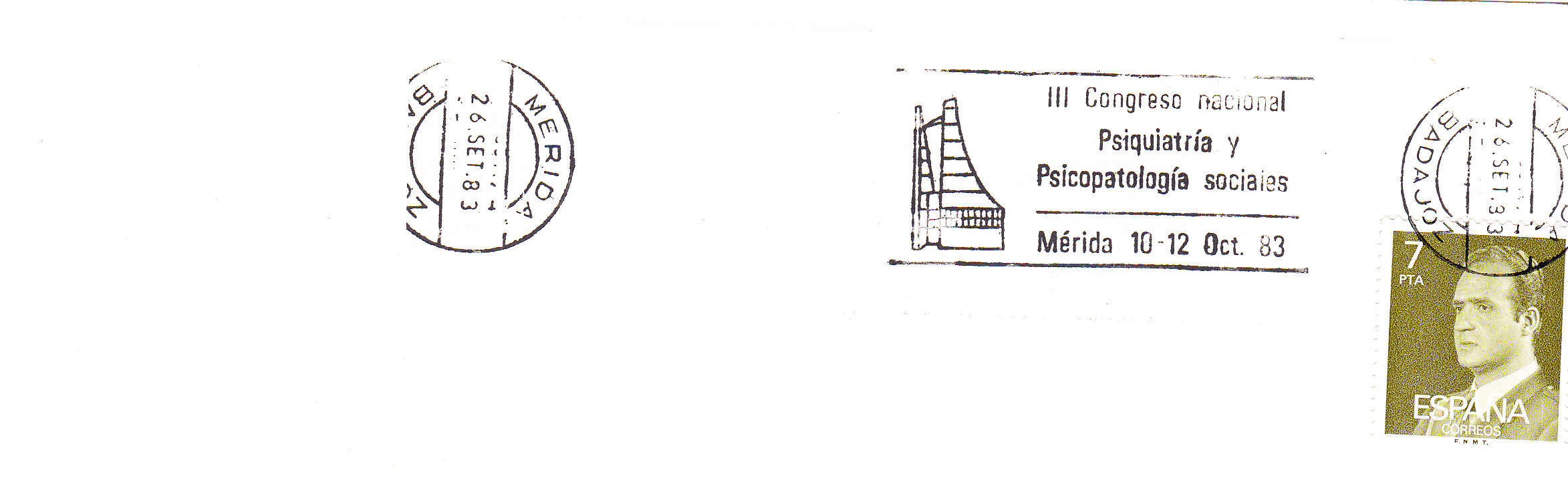 Adjunto 2 rodillos de Mérída de fechas anteriores, que aunque eran del tipo corto, no cuadra el círculo de la fecha. El amigo extremeño Paco de la Fuente (NINGUNO_S) nos haría salir de dudas, pues, es un gran conocedor y coleccionista de máquinas canceladoras.