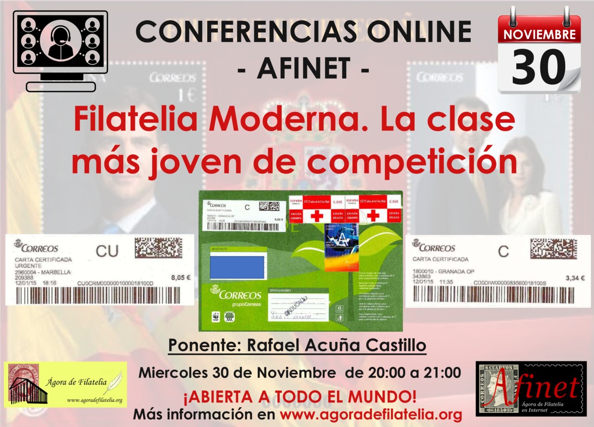 El domingo 11 de diciembre, a las 20:30 horas, celebraremos una conferencia telemática extraordinaria, con un tema hasta ahora inédito, de la mayor importancia en la Filatelia española.