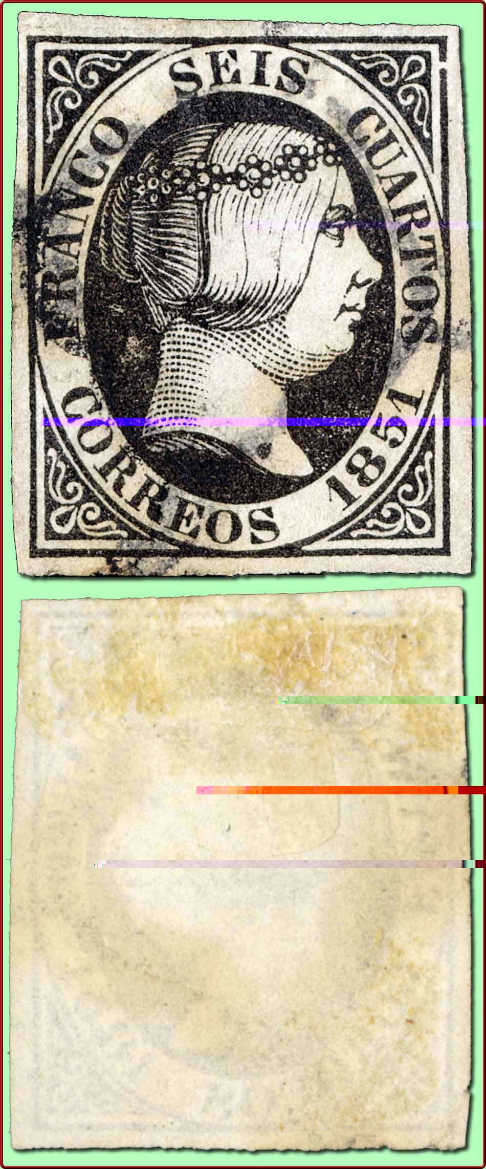 El primero, de las tiradas iniciales con papel grueso ... más las dos marcas de identificación ... ... es borde superior del pliego ...