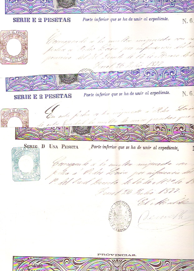 No se si estos los subi ya aqui,pienso que no,si los subi en otro hilo.Los añado a este .Se trata de dos expidientes por utilizacion fraudulenta de sellos ya servidos.