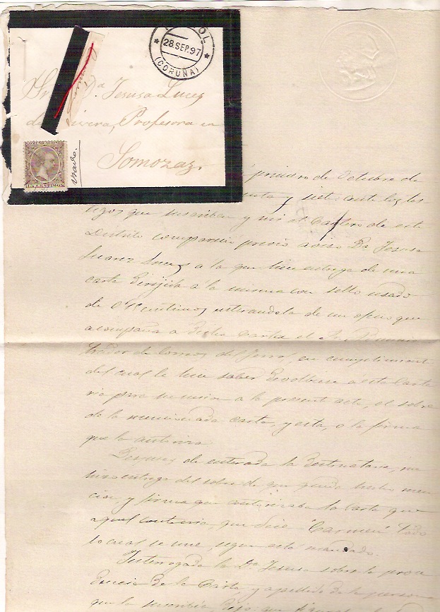 Tampoco parece muy plausible que, casi un año después, el remitente creyese que seguía existiendo el Impuesto de Guerra y abonase el mismo con un sello normal de 5 céntimos, más el supuesto derecho de certificado de 25 céntimos, más un cuádruple porte.