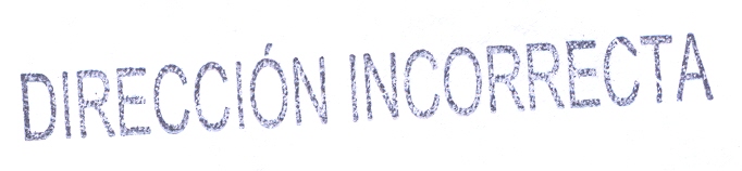 DIRECCIÓN INCORRECTA / MODIFIQUE SU DIRECCIÓN / EVITARA DEVOLUCIONES INNECESARIAS (color azul) (utilizada el 13/11/2012 en la oficina de La Barca de la Florida, Cádiz)