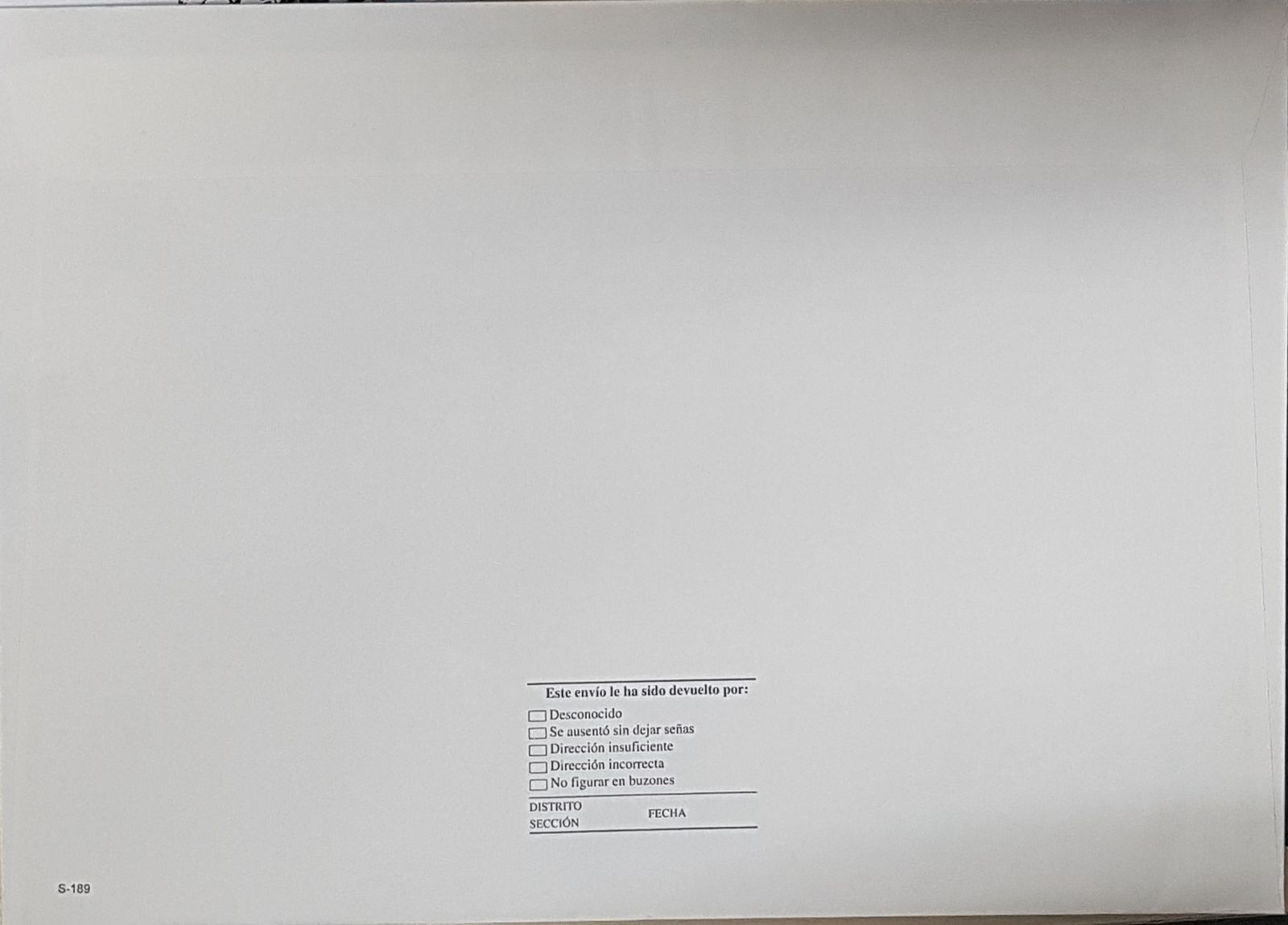 Denominación: Sobre S-189