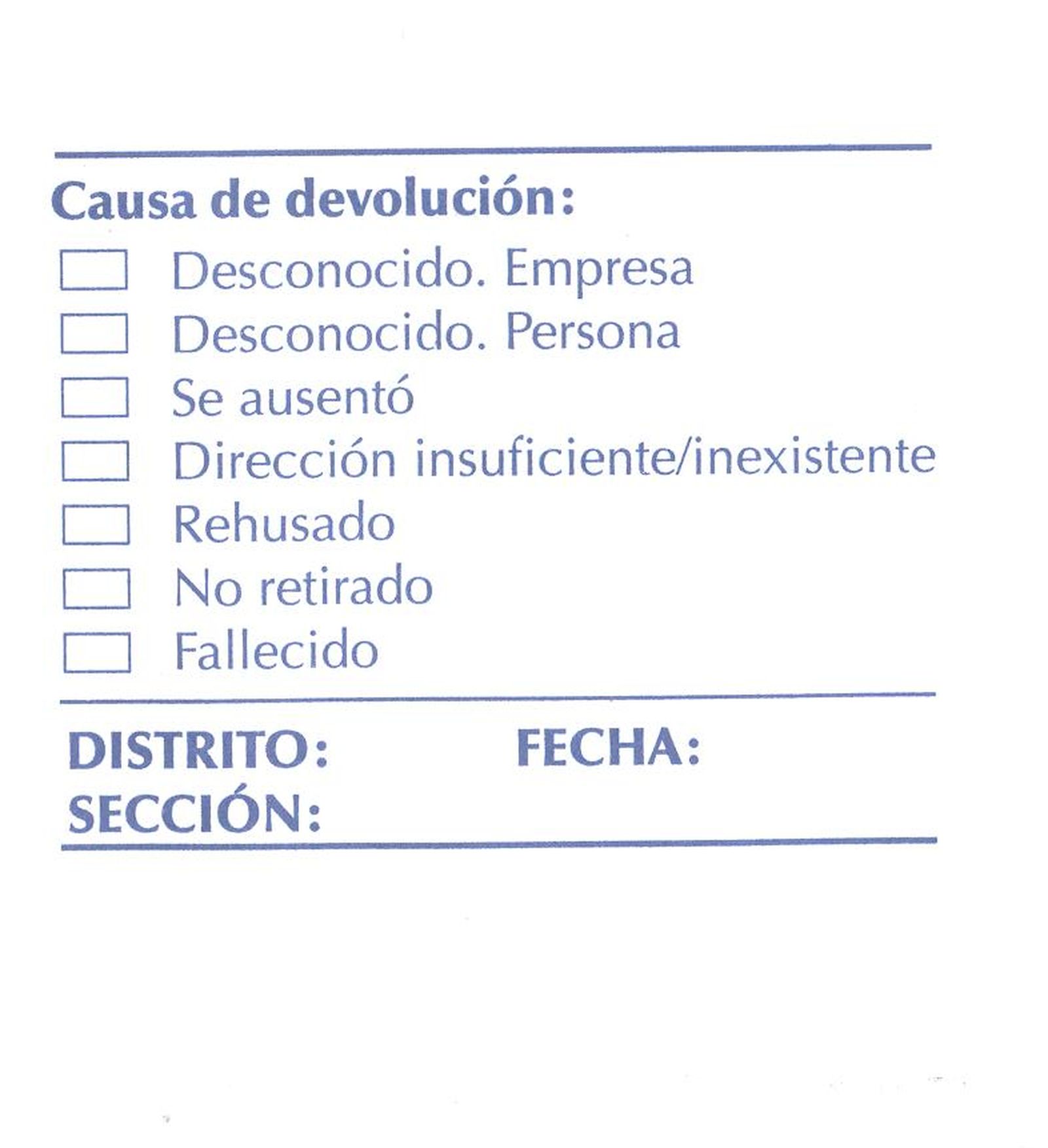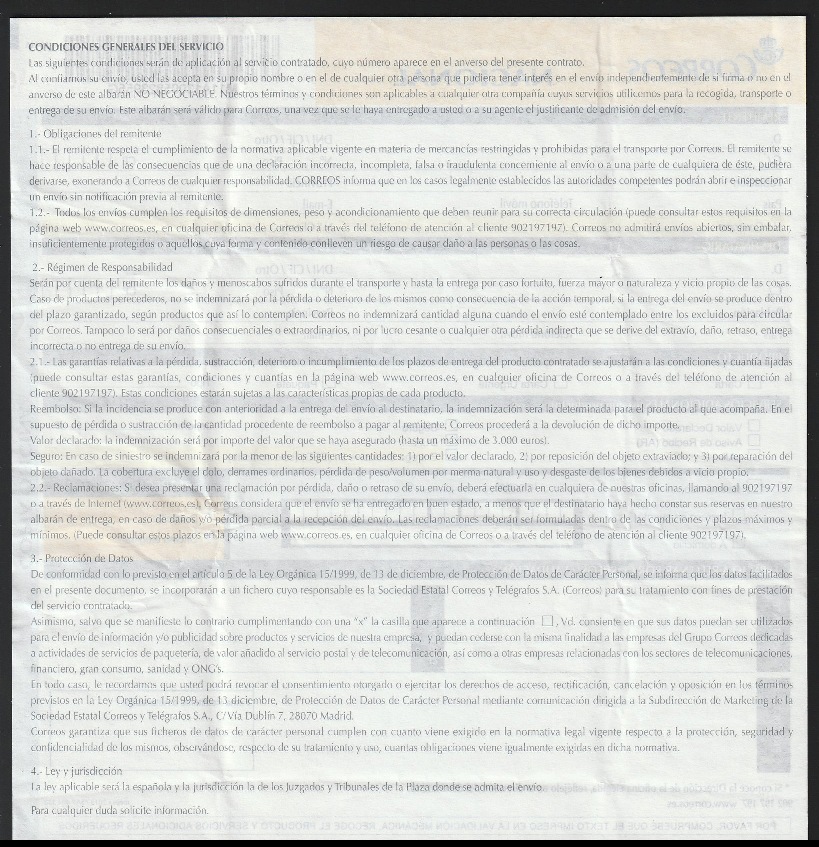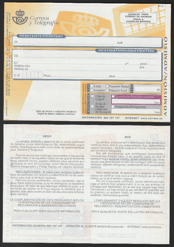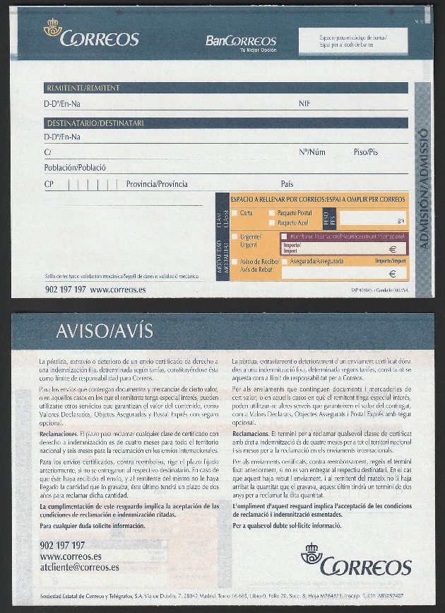 Por el reverso lleva un talón para que anotar, por parte del cartero, todas las incidencias de la entrega. Hoy en día con las máquinas PDA ya no se suele utilizar.