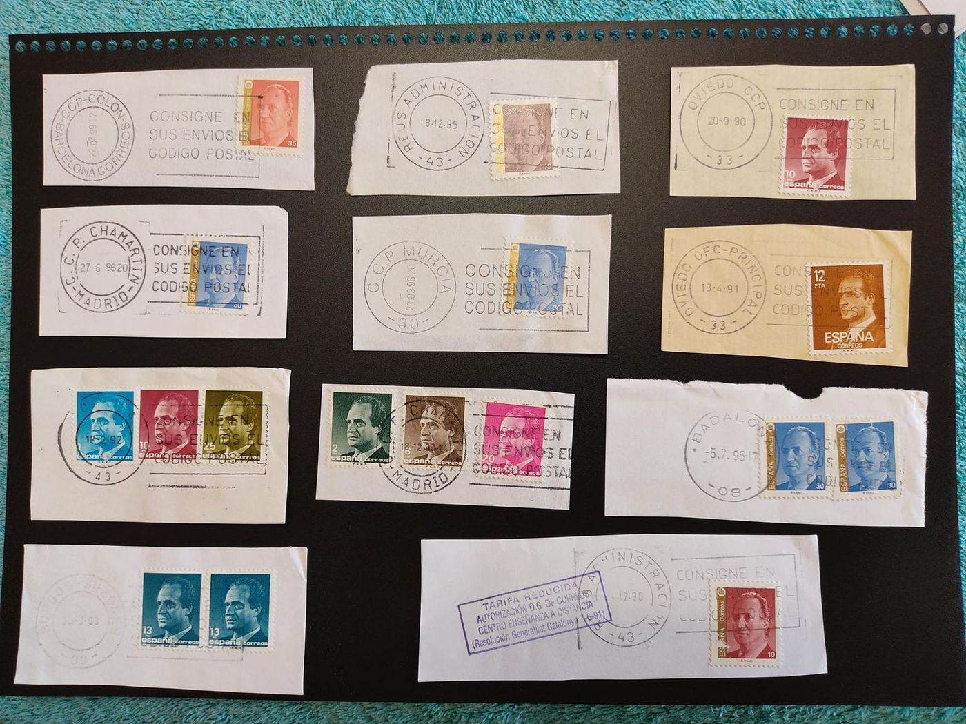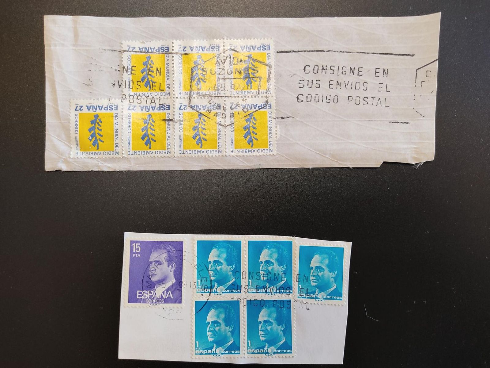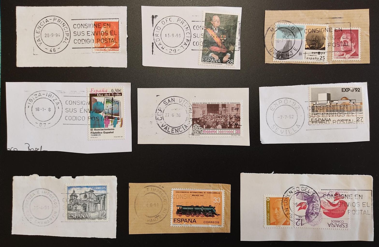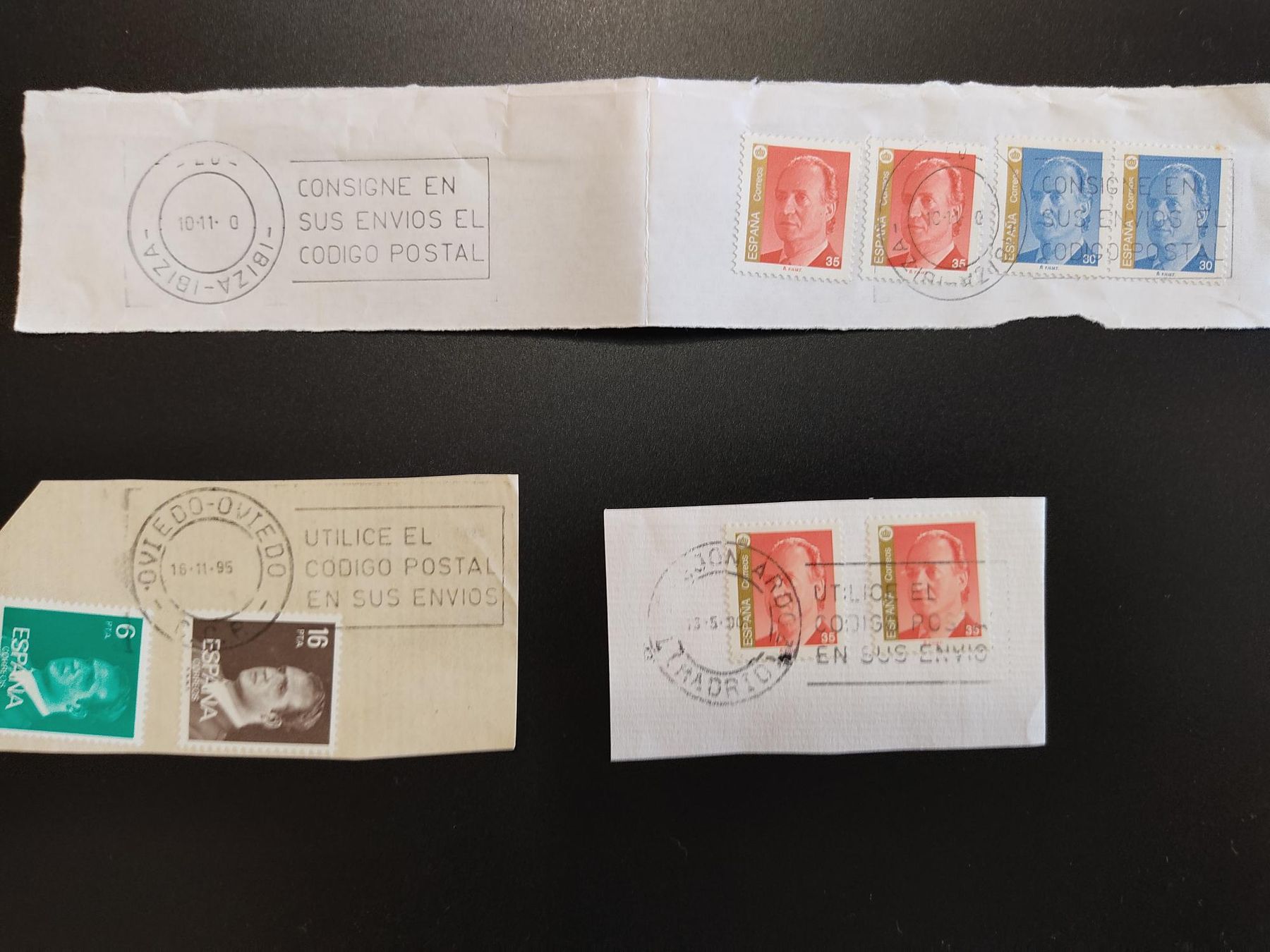 El primero, no es de cajetín, es de rollo; la fecha parece 4.9.91, Avión Buzones, en la parte superior y Cibeles Madrid, en la parte inferior.