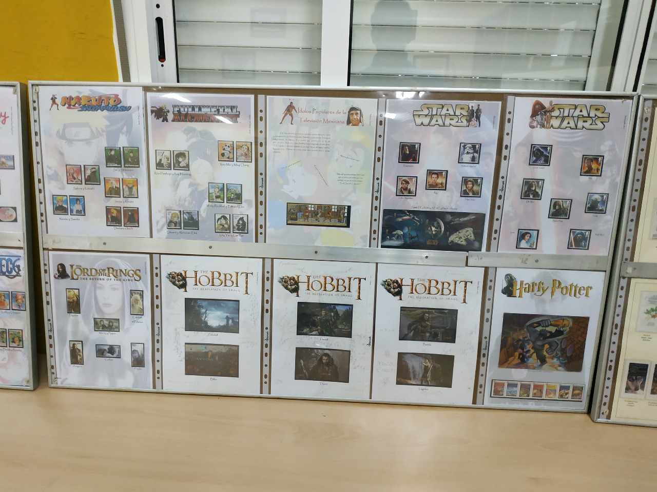 La colección estrella es la de nuestro secretario, el compañero Jesús Mora (que también está en el Ágora -Wismer_) Personajes de ficción infantiles y juveniles; Además una colección sobre las olimpiadas, otra de sobres circulados con motivo de tren, una de castillo y otra sobre el Cº de Platero. En el apartado de coleccionismo hemos puesto una representación de Programas de cine de mano, azucarillos, calendarios de bolsillo, postales y loteria.