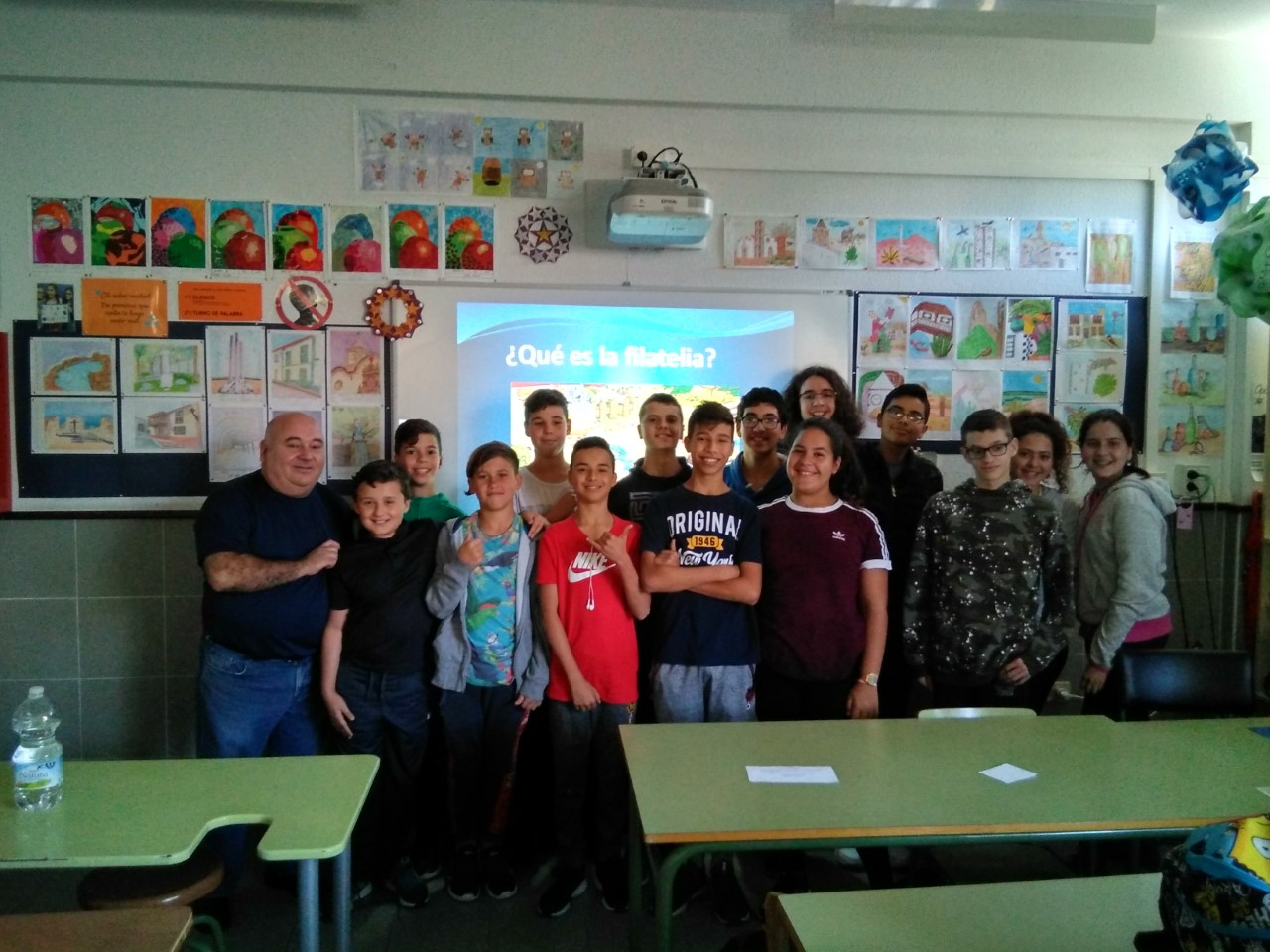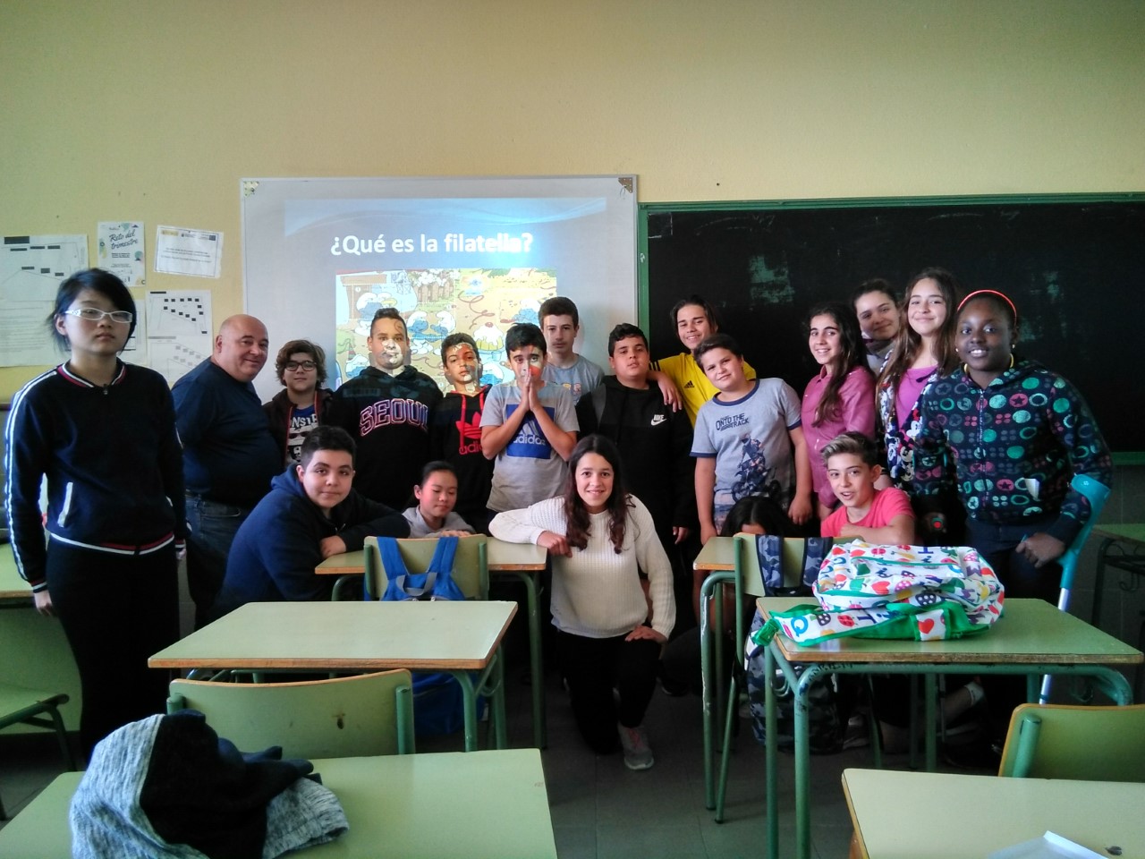 Hemos dado unas charlas de iniciación a la Filatelia a varios cursos de 1º ESO del IES Mencey Acaymo de Güímar, en Tenerife, y, además de explicarles algunas características de nuestro hobby e invitarlos a coleccionar, les hemos propuesto que nos escriban para regalarles 50 sellos. Estos sellos han sido donados por compañeros del Ágora y de otros grupos filatélicos de Tenerife. Además, les hemos regalado a cada alumno 100 sellos para que inicien su colección. Aún nos quedan más cursos por darles las charlas, que seguramente serán esta próxima semana.