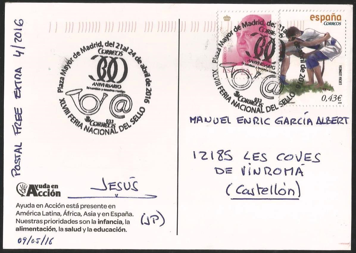 El matasellos lleva fecha del 13 de mayo del año 2016 y el número 035 de los realizados por Correos en el año actual.
