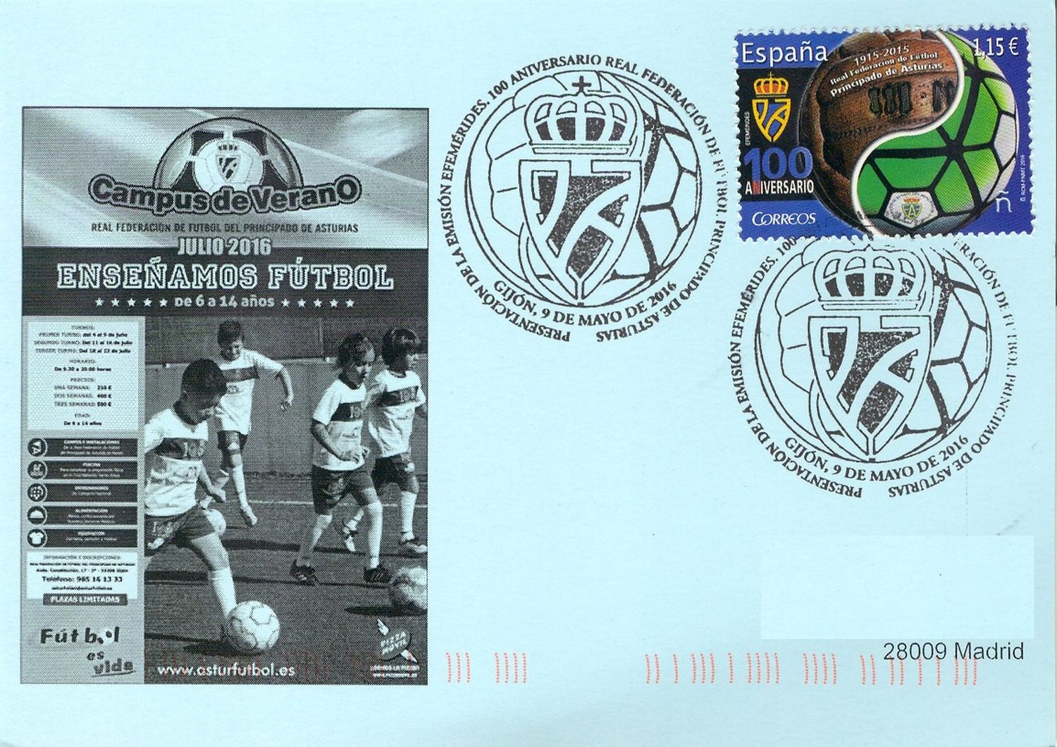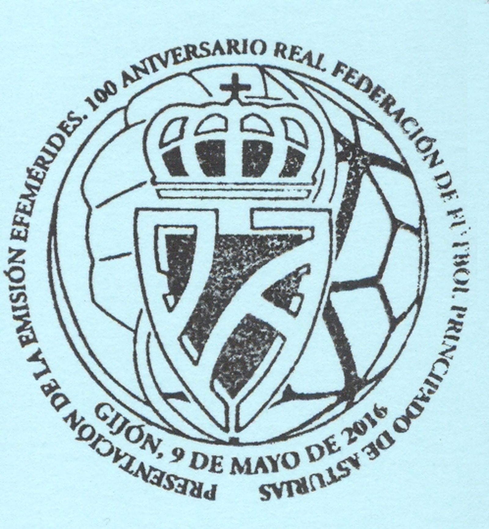 La séptima de ellas del año 2016 (7/2016) hace referencia al matasellos de presentación, realizada en Gijón el 12 de mayo del año 2016, de la emisión dedicada al "Centeanrio de la Real Federción Asturiana de Fútbol" que se emitió el 9 de mayo del año 2016.
