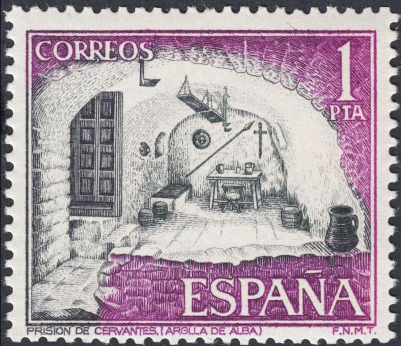 Uno de mis sellos españoles preferidos. Prisión de Cervantes, Casa de Medrano, Argamasilla de Alba. Fue grabado en 1975 por Manuel García Martínez conjuntamente con Antonio Manso y Enrique Paniagua.