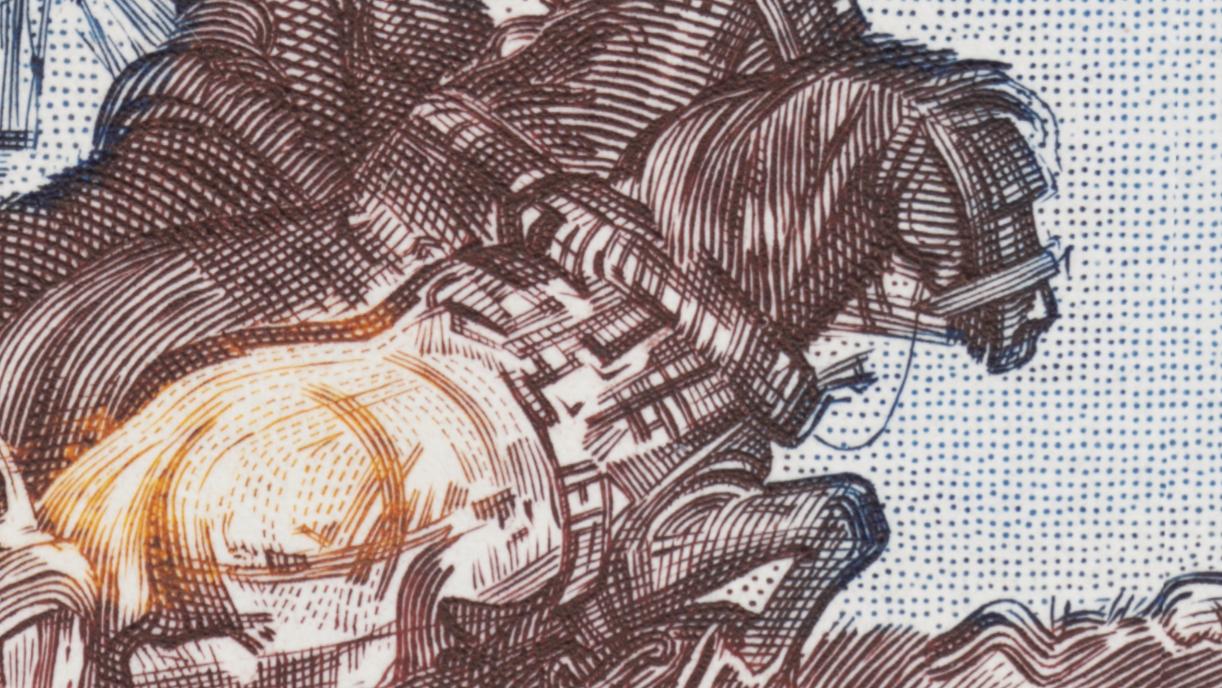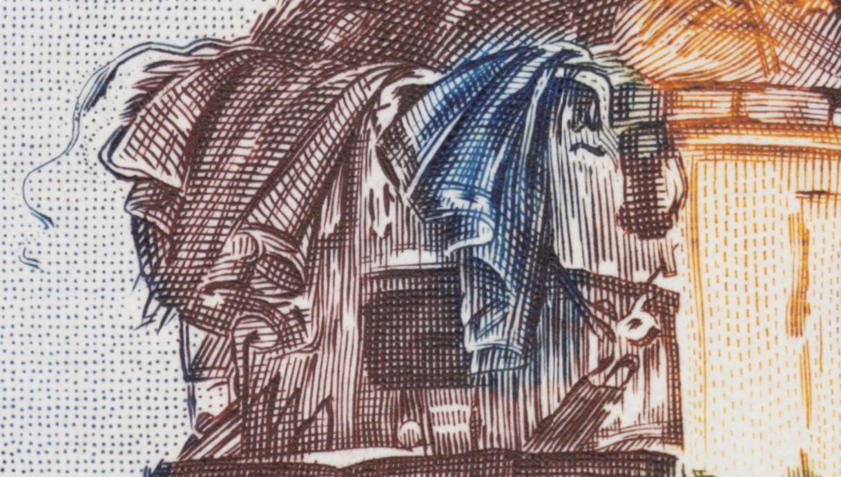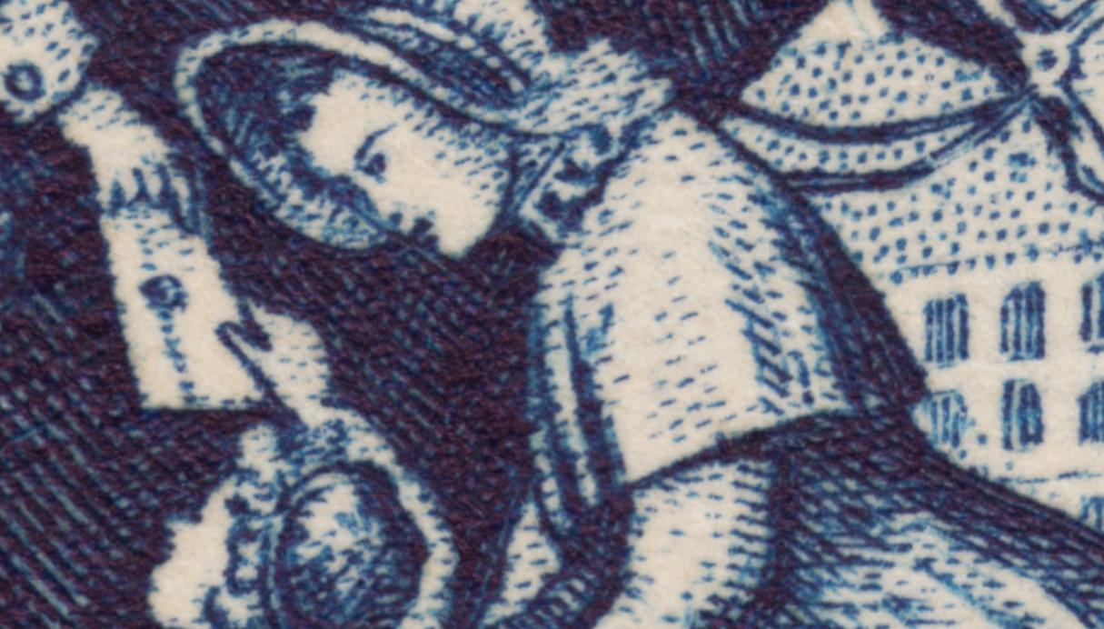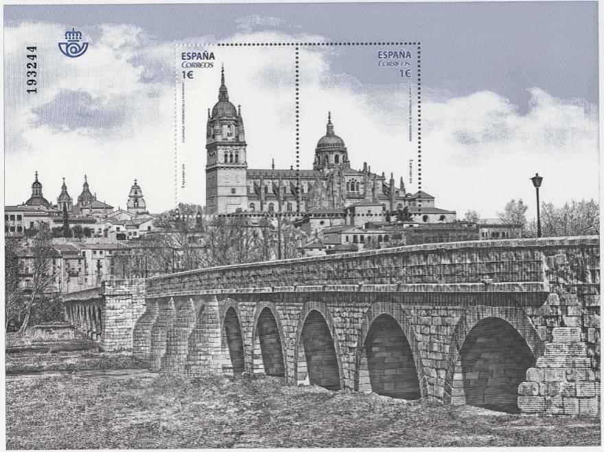 También, la mayoría de las calcografías de hoy son de peor calidad; no sé muy bien la razón, si tiene algo que ver el offset o simplemente es cosa del grabador, de veras que lo ignoro, a ver si alguien con más conocimientos que yo nos lo explica bien. Sirva como ejemplo la última hojita de Salamanca: espectacular a simple vista, calidad decreciente con la lupa y casi vulgar bajo la barra del escáner.