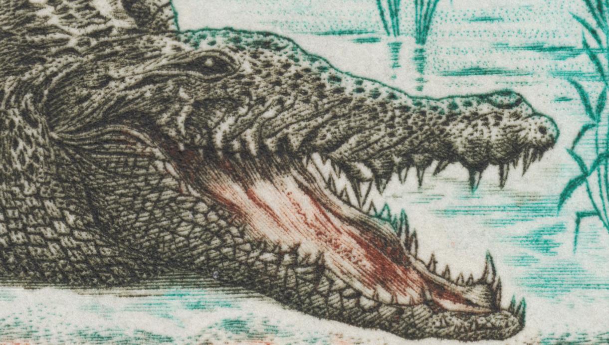 Las casas de grabadores inglesas y americanas hicieron verdaderas obras de arte para la mayoría de países latinoamericanos durante la primera mitad del siglo XX. El Salvador, 1948, uno de los seis valores que homenajean a F.D. Roosevelt. Waterlow & Sons, Londres.