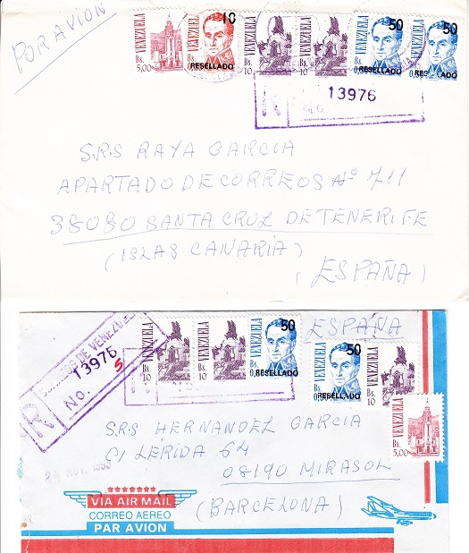 Tener en cuenta que son "CERTIFICADAS" pues en los últimos años, si se mandaban cartas de Venezuela a otros países (En este caso ESPAÑA), se PERDIAN LAS CARTAS, de ahí que se certificaran.