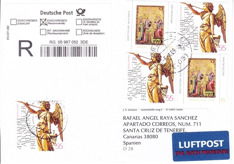 Polonia, Alemania, Rumanía, Francia y Serbia, (este último es autoenviado y es el único filatélico).
