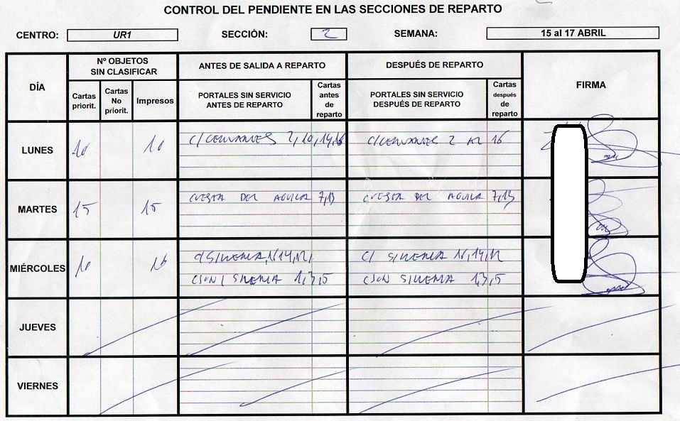 Esta incidencia está firmada por el JEFE DE DISTRIBUCIÓN, me pregunto si es lo mismo que JEFE DE REPARTO...lástima que no haya tampón administrativo.