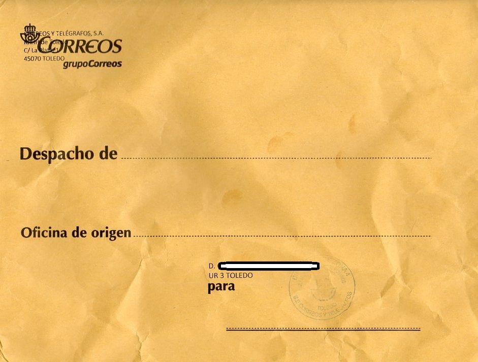 Un sobre de los que utiliza Correos internamente y su contenido: