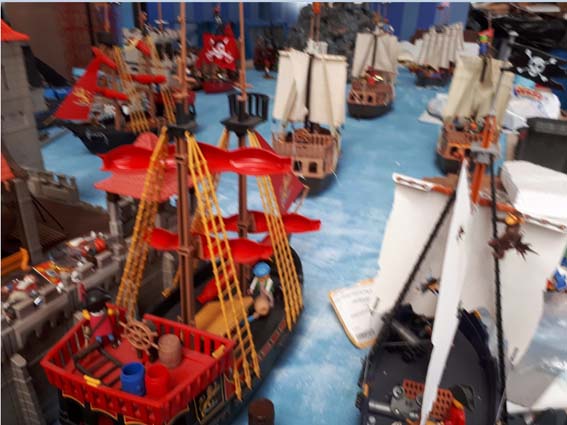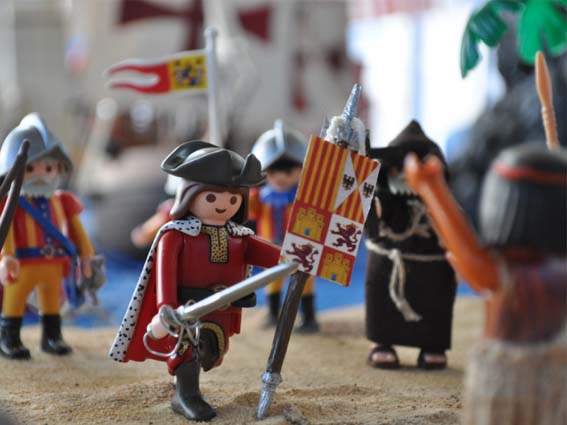 Atención especial son las diferentes escenas que contienen envío de correspondencia, así se incluyen diferentes “guiños” a esta acción, desde el humo hasta el origen de los Taxis, pasando por Colombofilia, Chasquis, incluso… una botella de naufrago. La muestra incluirá objetos reales provenientes de exposiciones museísticas para ofrecer una visión a escala del Juguete a la Realidad entre las que se incluyen un sable, balas de cañón, Octante, Astrolabio,… serán expuestos alrededor del Mar Océano creado para que La Pinta, La Niña y La Santa María lleguen a buen puerto… y por supuesto Cristobal Colón también estará en el momento de clavar su rodilla en aquellas tierras llamadas las Indias Occidentales, y también quién se llevó los honores del nombre de este Nuevo Mundo, Américo Vespucio.