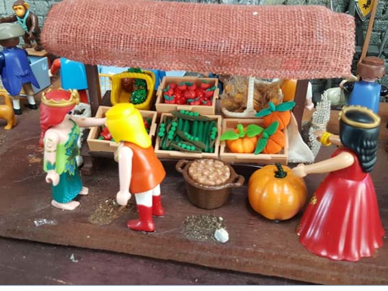 Mercado: Productos de Indias occidentales, e Indias Orientales, productos de la huerta, cítricos, esencias, telares, animales exóticos, … Alfareria: Azulejos, cerámica…/ Forja: Hierro, herramientas, afilar… Escultor: Estatua y relieve. Medicina: prefarmacia, remedios, San Cosme y San Damián, Orden Templaria de San Juan (Hospitalarios), Pre-botica,… “Hotel” de Franciscanos/ Repostería / Picaros / Calle Pajaritos. Imprenta: Cromberger/ Colombofolia/ Ganadería / Esquilar/ Rueca/ Cartas Españolas (Juego) / Taberna: Cerveza / Elaboración de Tabaco / Agua va… / Baños de época/ Lavandera / Balcón florido / Enamorados / Buzón de Correos / Calesa Sevillana / Turnd und Taxis / Caballerizas: Caballo andaluz/ Torero y Toro (Miura…) / Derbi Sevilla VS Betis / Comprador de Libros, transporte de publicaciones,… / Correspondencia a Caballo / Escribas (listado, lectura de actas, mercancías…) / El valor del lacre… ( documento)/ Casa de Contratación / Fabricación y acuñación de monedas. / Contabilidad de Plata y Oro / Virrey / Clases de Náutica / Américo Vespucio / Religión Cristiana (oración y juramento ante la cruz) Orden Franciscana / Paso con 29 costaleros del Stmo. Cristo de Vera Cruz / Iglesia / Altar de Vera Cruz / Pescadores, pescadería, descarga en puerto./ Rederas/ Tumba de Colón (4 viajes en vida y 6 muerto) / Templarios /Trono taxi / Archivo de Indias / Escuela de pintura. Murillo, cuadros… / Recepción oficial. Diplomacia / Juegos de Niños / Ajedrez Humana / Colocación de Archivo (Libros, textos, y mapas) / Maqueta de barco /Reunión de estrategia. Mapas, cartografía,…/ Juicio de Mercaderes / Almacén de carga y atraque / Vigilancia de embarcaciones / Vigía en atalaya / Tablao Flamenco. Bailaores / Pozo / Aguadoras… etc…