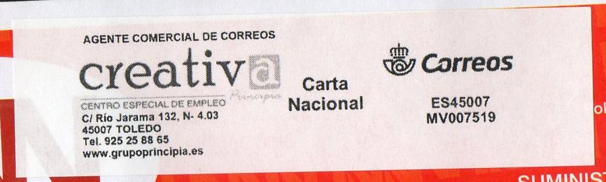 Una cosa que me ha llamado la atención es que CREATIVA no imprime en los sobres...pone pegatinas. Todas son así y no tardarán mucho en ser azules. Y como la que he subido no me gusta, creo que para el catálogo es mejor esta "pegatina"