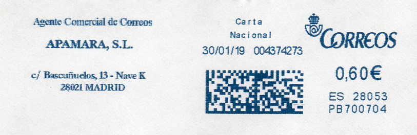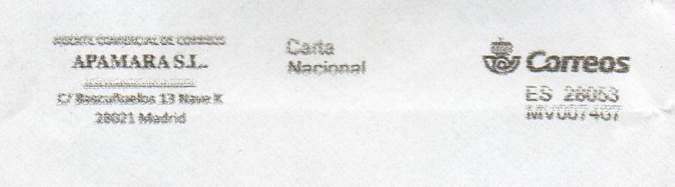 El turno es para APAMARA SL MV0007467, eso sí, con el formato ya definitivo de estas MV y me da la nariz que correos ha dado a las pitneys el mes de enero de cortesía para "reconvertirse" en intimus o MV o como dice Alfareva, hasta donde llegue el saldo...