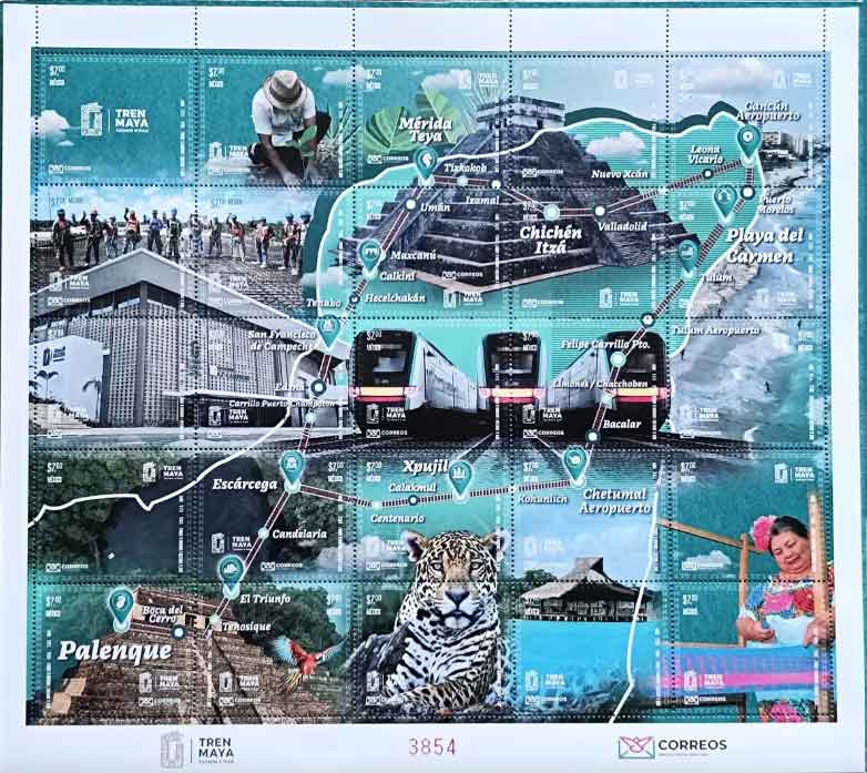 Es una preciosidad la hojita del primer aniversario del Tren Maya. Ole diseño. Aparte de ser una maravilla de hojita, personalmente para mí, creo que eso es fomentar la filatelia.