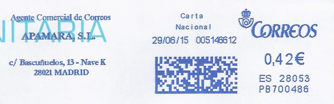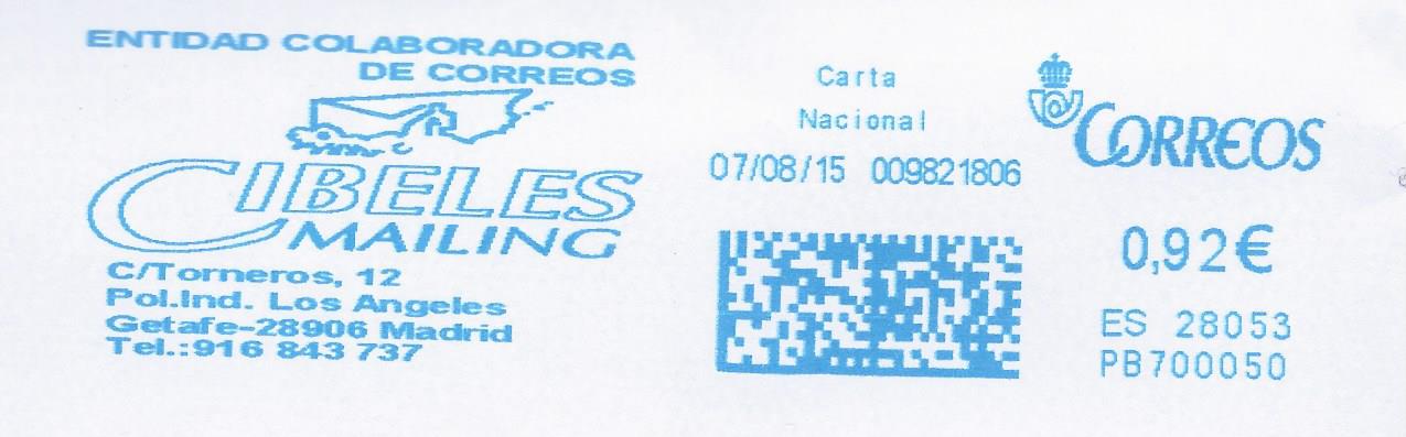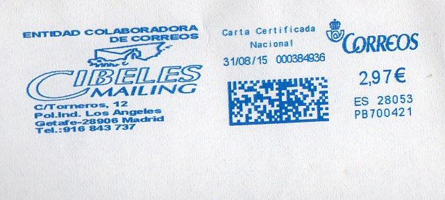 PB 700421 / ES 28053 / Carta certificada Nacional / 31/ 08 / 15.