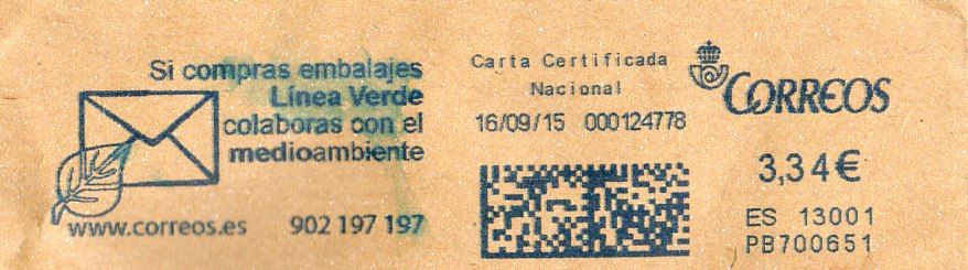Publicorreo Nacional / ES 18009 / PB700657 / 15/07/15