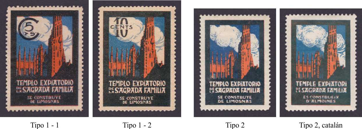 De este tipo Pro-Iglesia de Sans hay al menos el 10 y el 25 céntimos además del 1 peseta. la duda la tengo con V. Padrós, pues no se si puede ser el dibujante o la Imprenta,,, o los dos.