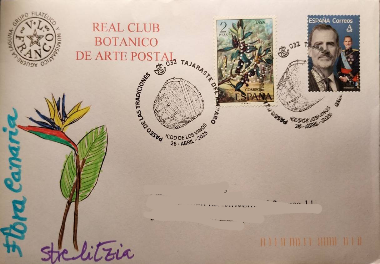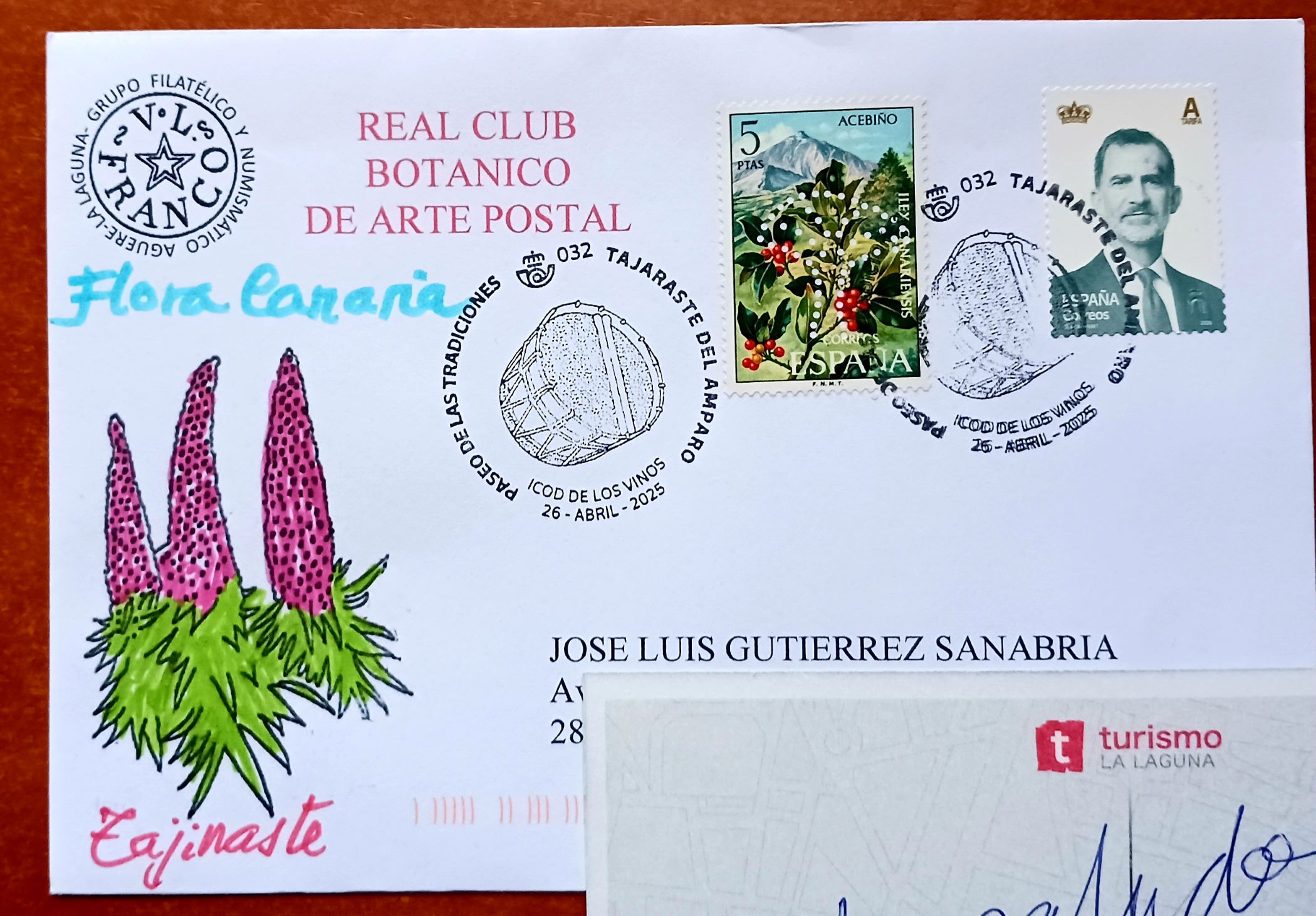 Recibo el sobre de Rafael sobre la flora canaria, matasellado con el matasellos del Paseo de las Tradiciones. Tajaraste del Amparo. Icod de los Vinos.