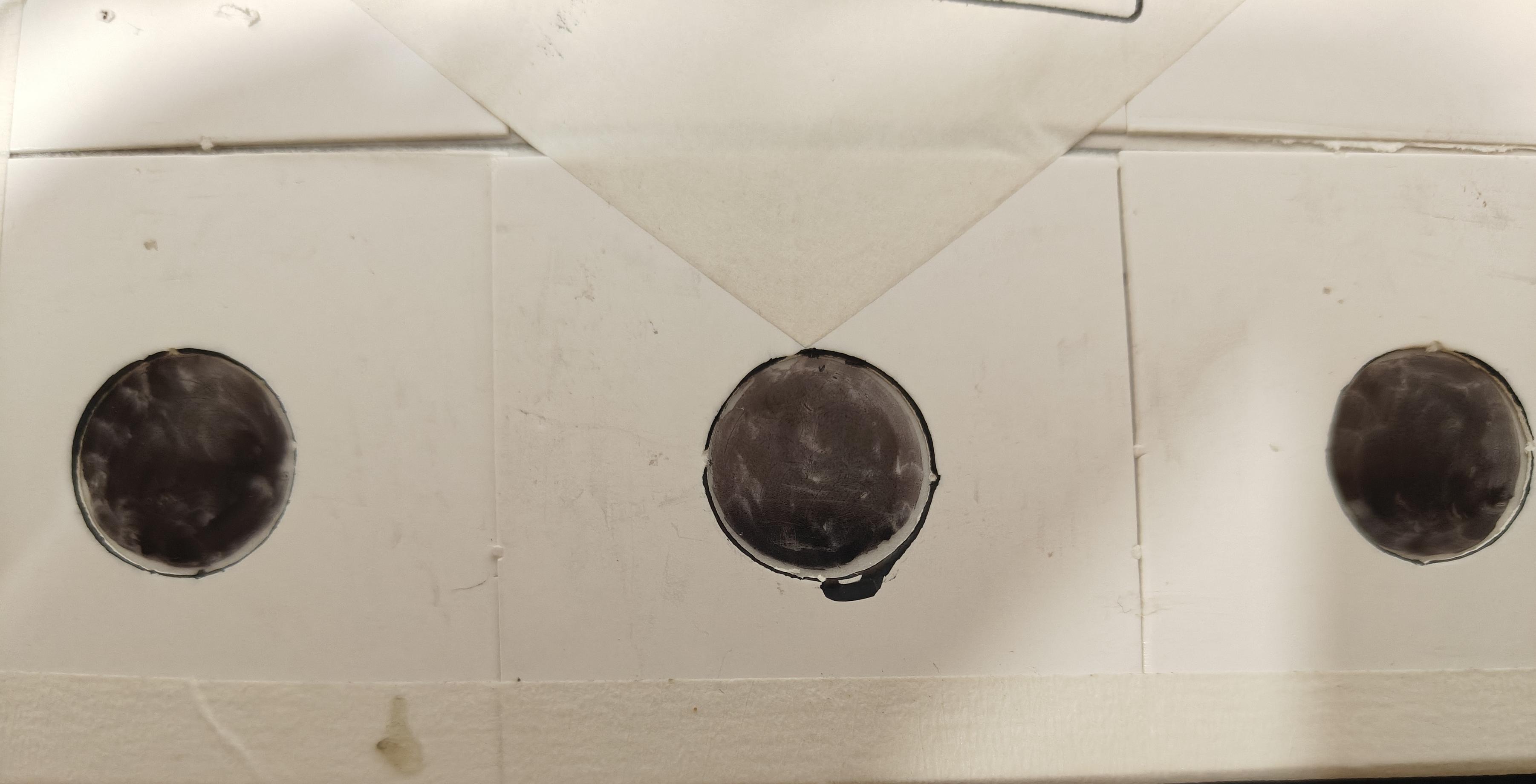 Las monedas con el reverso con el escudo franquista, aprovechando el plástico de la vuelta , pinté este de negro sin dañar la moneda.