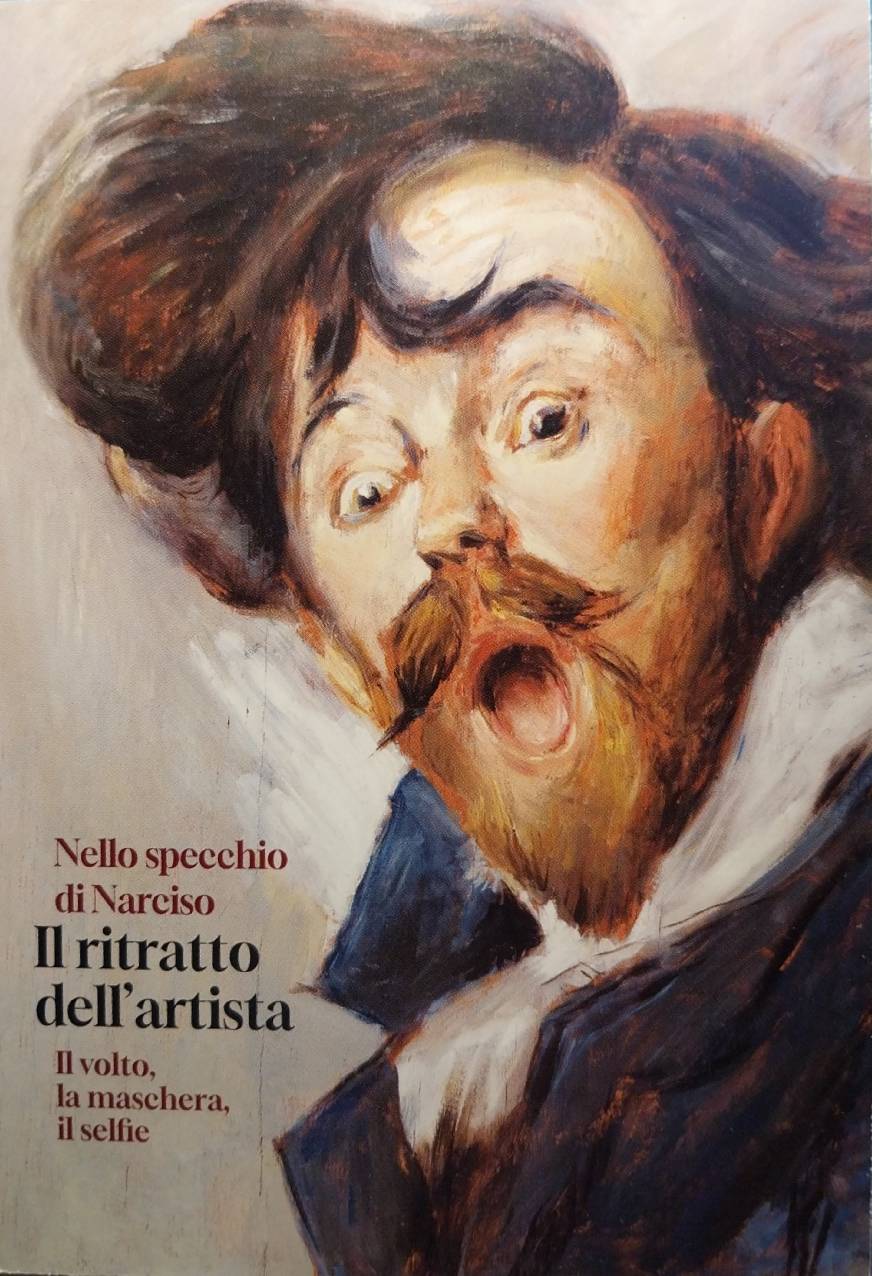 Dentro del sobre me regala una postal de una exposición en Forlí (Italia), donde aparece un cuadro de Giacomo Balla. Habla sobre el espejo de Narciso, un detalle muy bien cuidado.