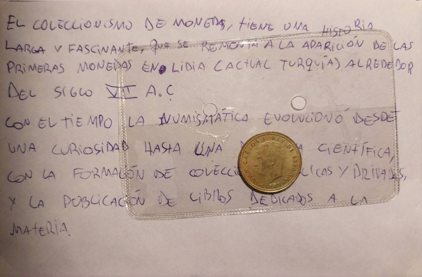 En el interior viene un sobre con una explicación sobre el origen de la moneda y del coleccionismo numismático.