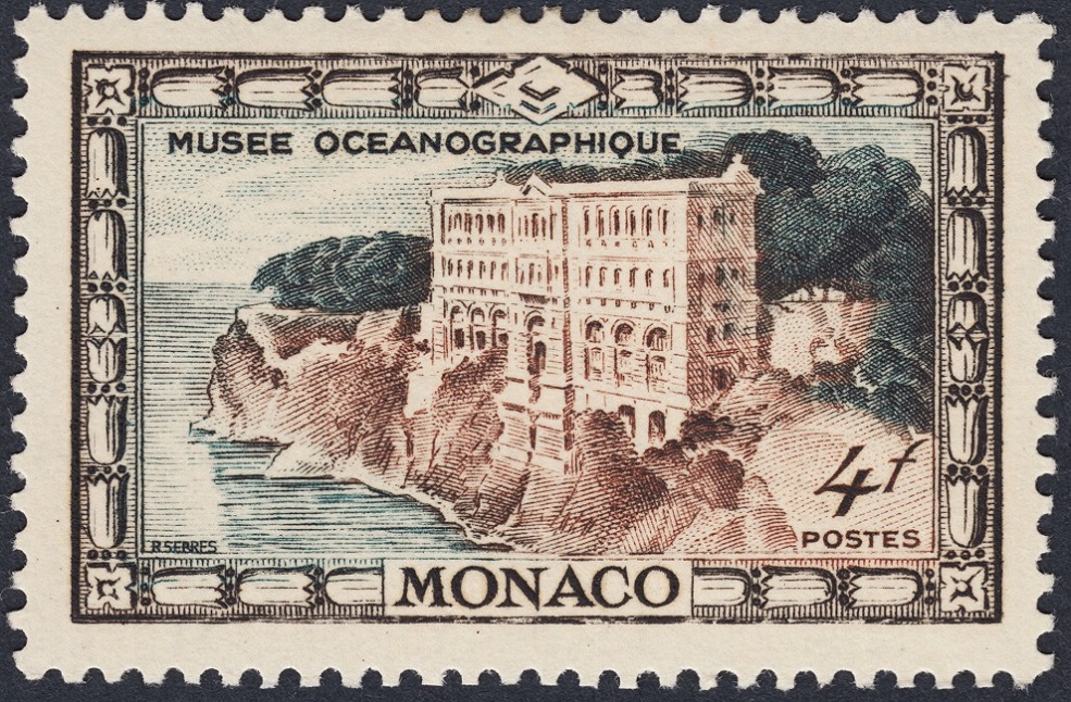 Hace unos días decíamos que habríamos de hacer justicia a un sello de Serres en cuanto lo recibiéramos (*). ¡Helo aquí! Es el sello del Museo Oceanográfico de Mónaco emitido en 1949. Una belleza de diseño y ejecución: qué acicate artístico para la emotividad del espectador.