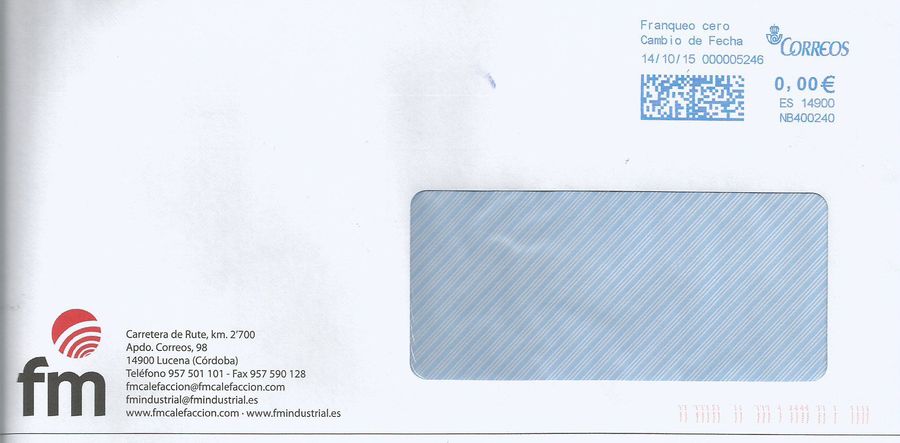 Sea como sea, el resumen es que es un mal uso del tipo de envío "franqueo cero", pero como siempre, el propio Correos es el que menos respeta la normativa que publica. Es como los franqueos mecánicos rojos que todavía se ven funcionando en algunas oficinas, esos deberían de haberse dejado de usar hace años.
