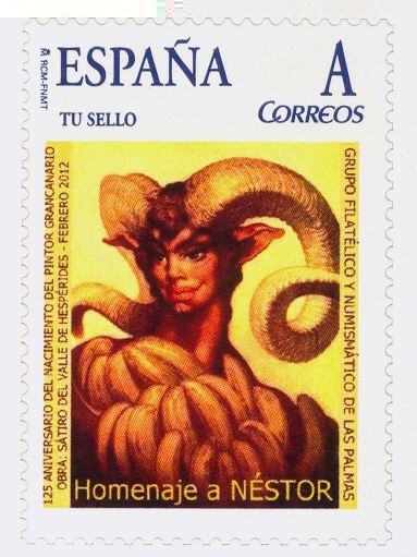 - Año 2012. Homenaje a Néstor. 125 Aniversario del nacimiento del pintor grancanario. Obra: Sátiro del Valle de Hespérides - Febrero 2012.