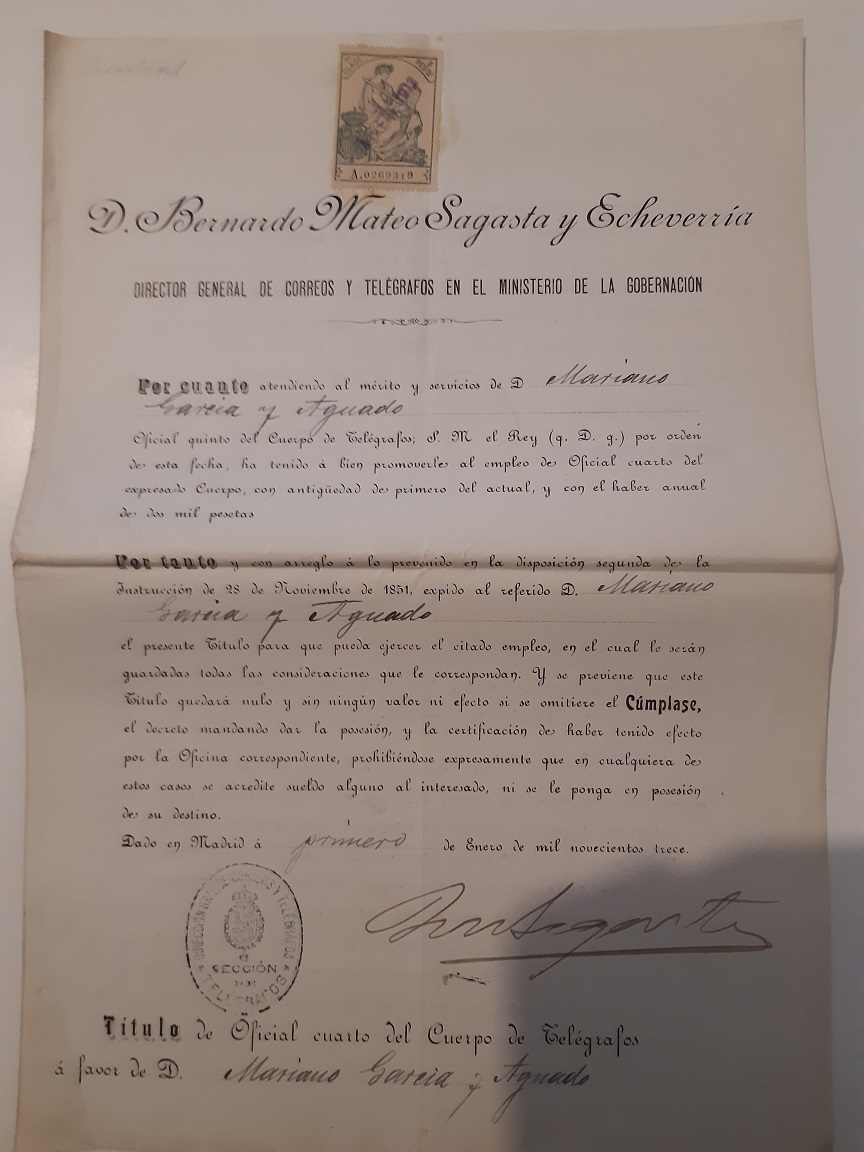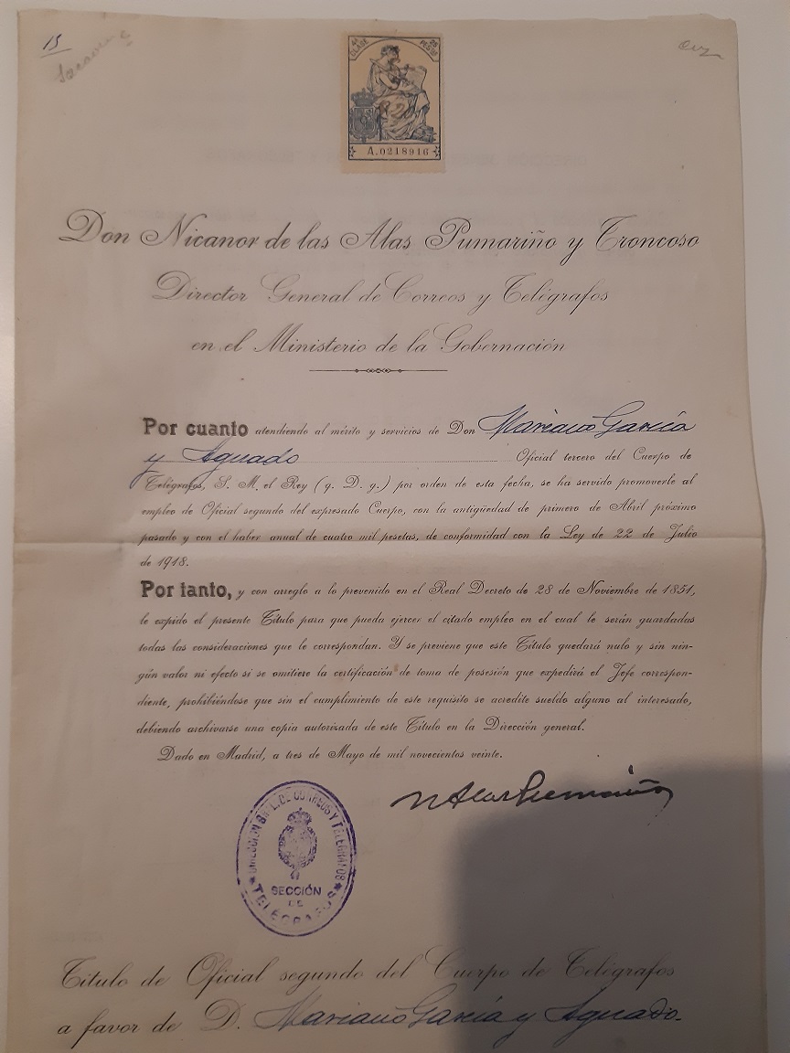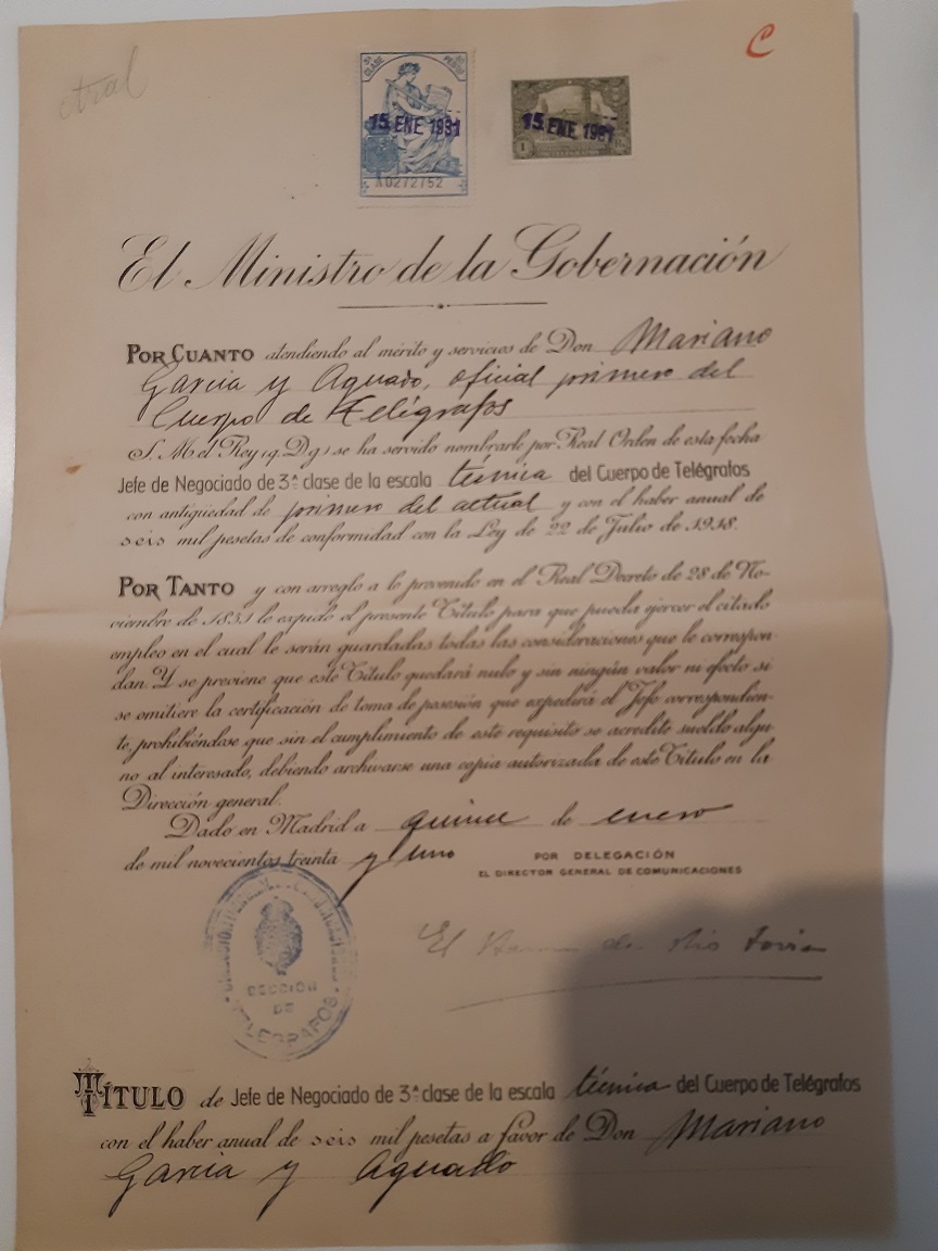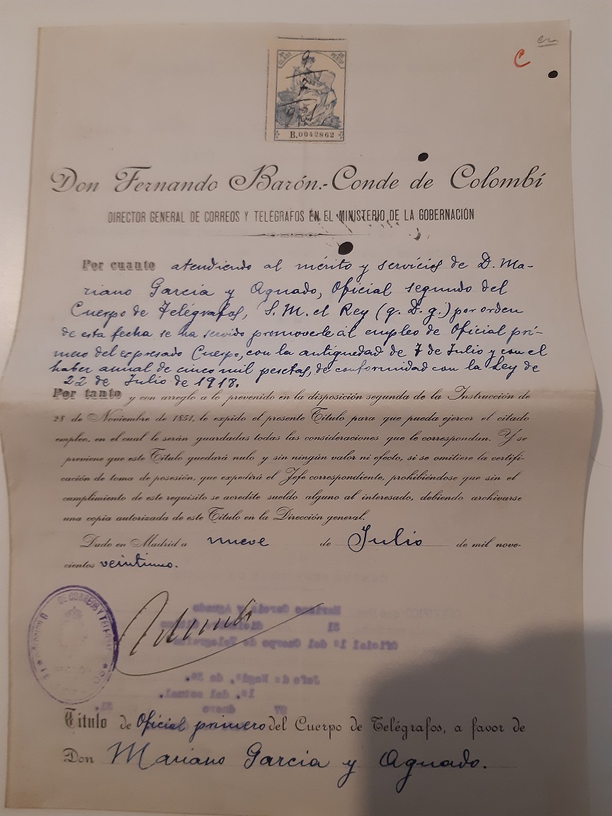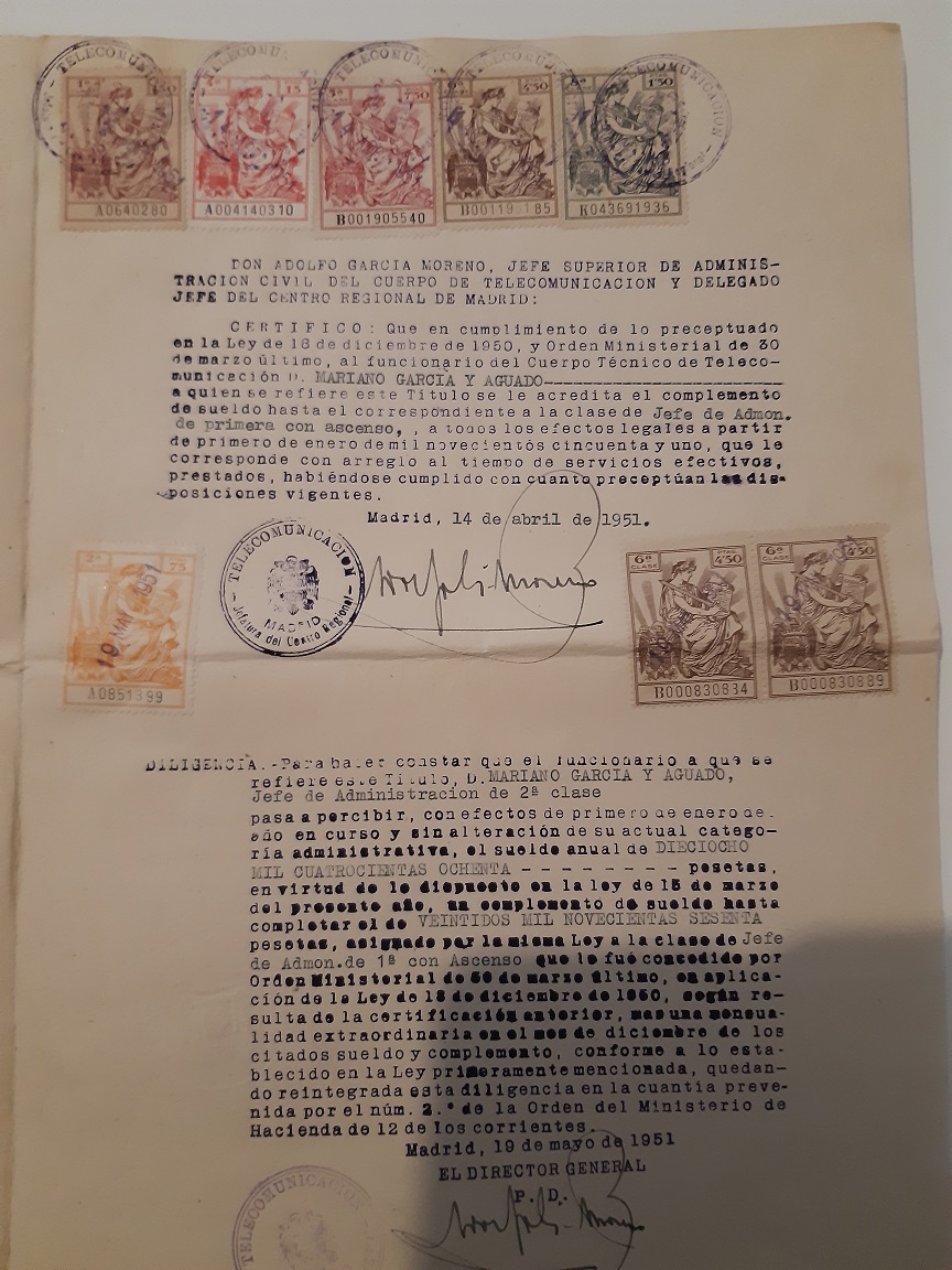 No solo, creo, los documentos son interesantes por el hecho de ver cuánto cobraban y cómo se ascendía dentro de Correos y Telégrafos, sino también por los sellos fiscales y benéficos que contienen, algunos muy interesantes aunque comunes.