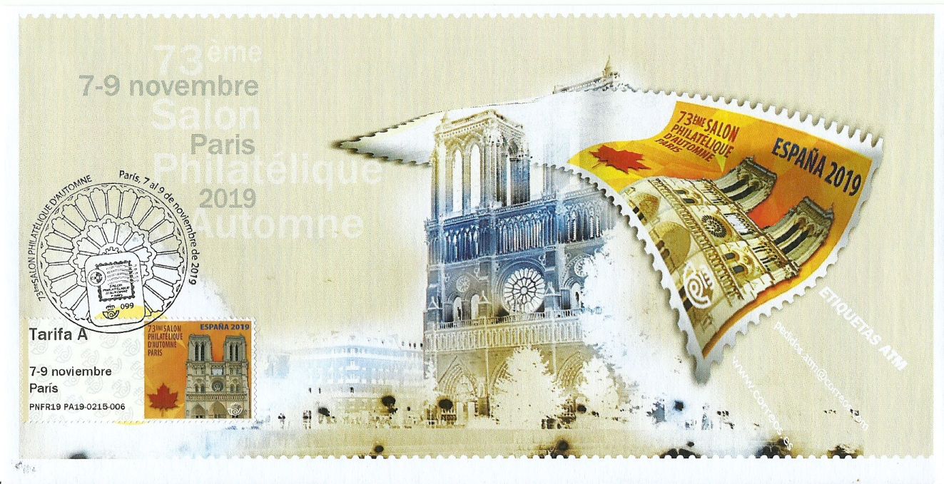Empiezo por Paris, ya vimos que la oferta que se iba a realizar en aquella Feria era un ATM con la imagen de la devastada por el fuego Catedral de Notre Dame, y que sólo se podrían obtener los ATMs con la máquina de sobremesa. El código de las etiquetas fue PNFR19PA19 xxxx xxx, donde P indica la palabra Producción, es decir la maquina de sobremesa (un portátil y tres impresoras), N el mes de Noviembre, FR19 que se imprimió en Francia en el 19, PA19... en Paris en el 19, y el código se sesión y número de la etiqueta dentro de la sesión.