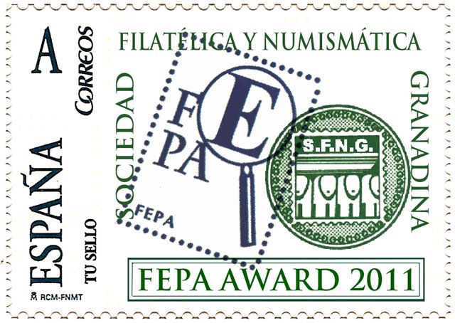 En este sentido, la Sociedad Filatélica y Numismática Granadina ha querido dejar para la posteridad filatélica la concesión del premio "FEPA AWARD 2011" y para ello nada mejor que encargar la edición de un sello personalizado.