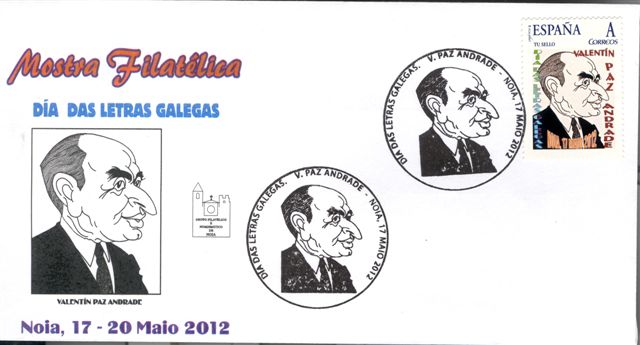 El Grupo Filatélico e Numismático de Noia, con ocasión de la celebración de la "Mostra Filatélica. Día das Letras Galegas. Valentín Paz Andrade" que tuvo lugar entre del 17 al 20 de mayo del año 2012, emitió un nuevo sello personalizado.