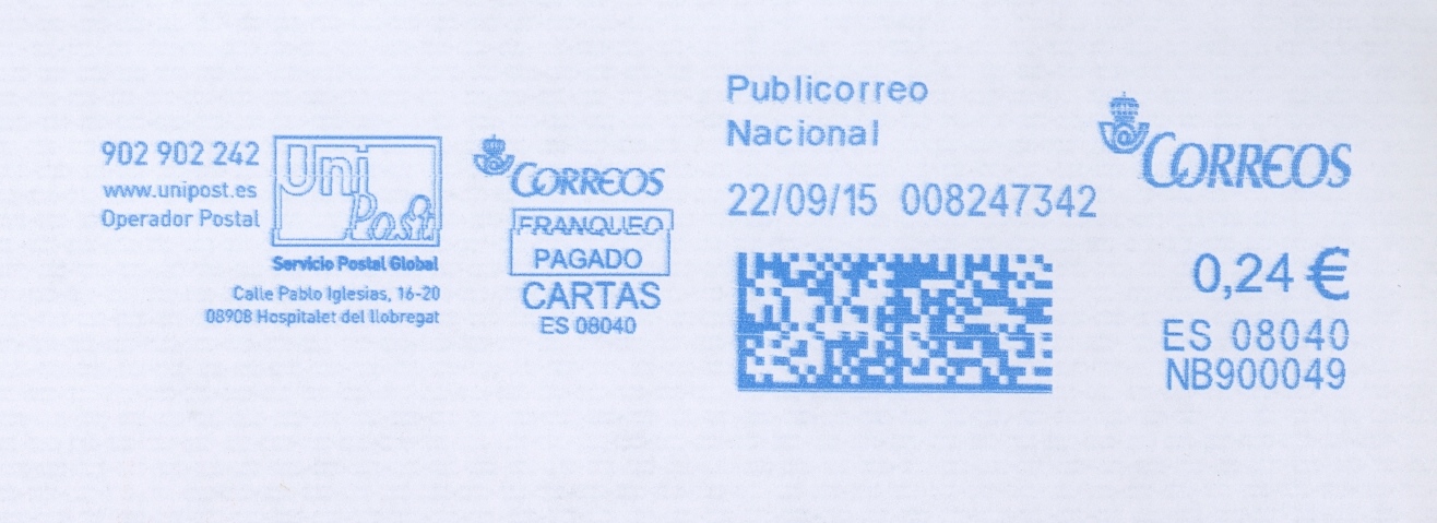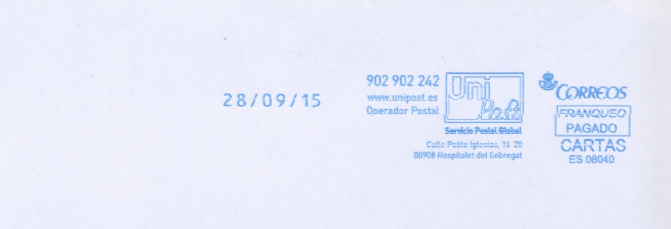 Y para recordar, un Franqueo Pagado de Unipost impreso con una Neopost: