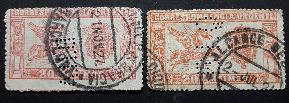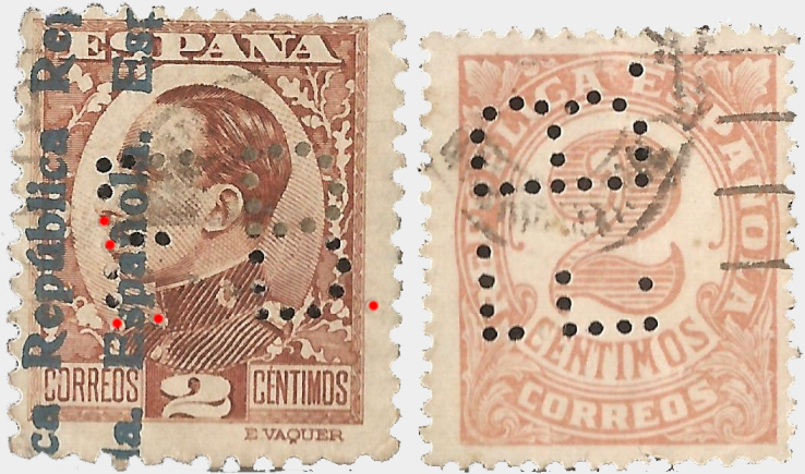 Así que tenemos un misterio más!!!! Una marca empleada en tiempos y lugares tan distantes ¿puede ser de una única empresa? ¿la filipina traspasó la máquina de perforar a la canaria? ¿es todo un efecto óptico? ¿se teletransportaba la taladradora?