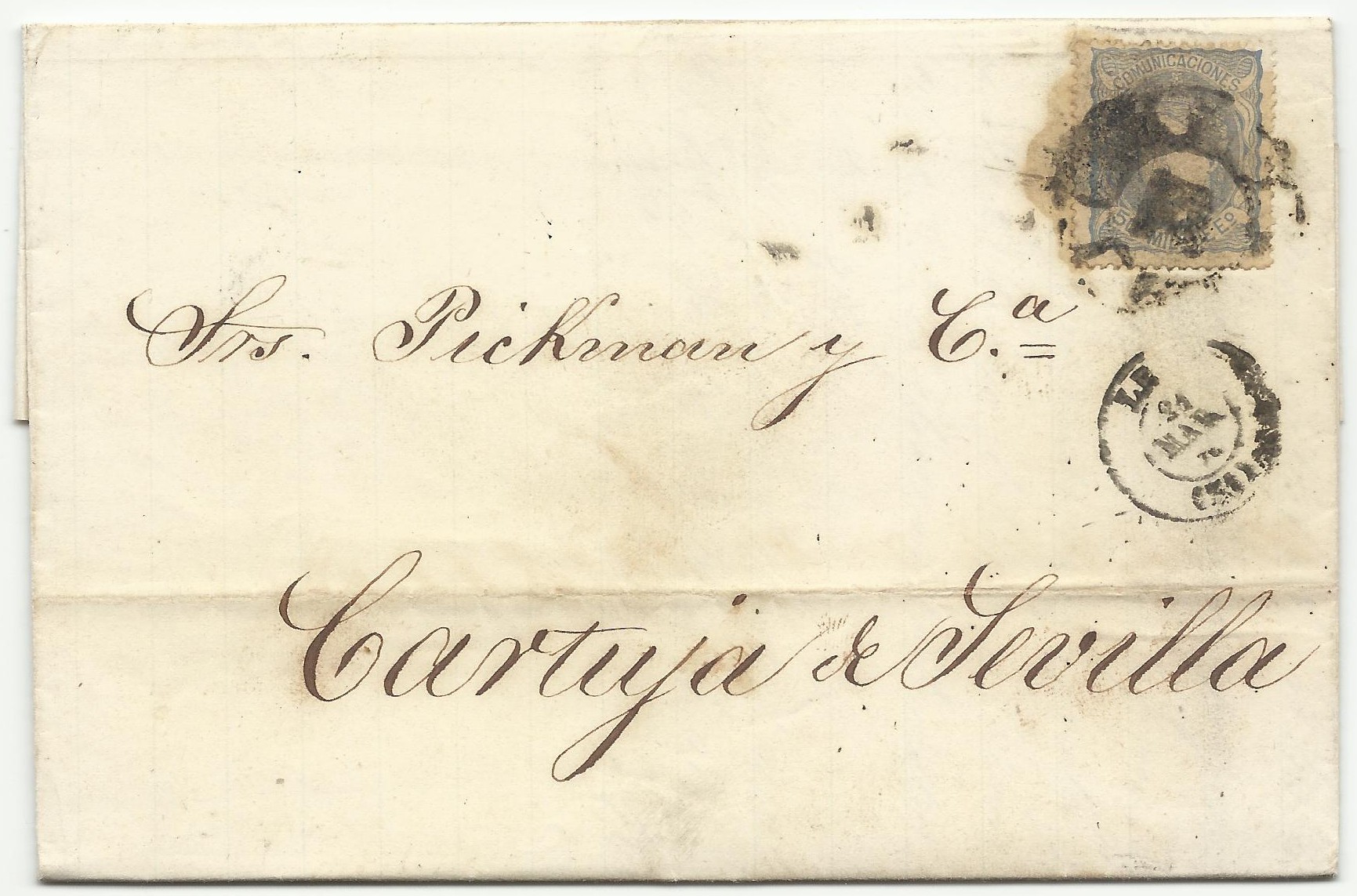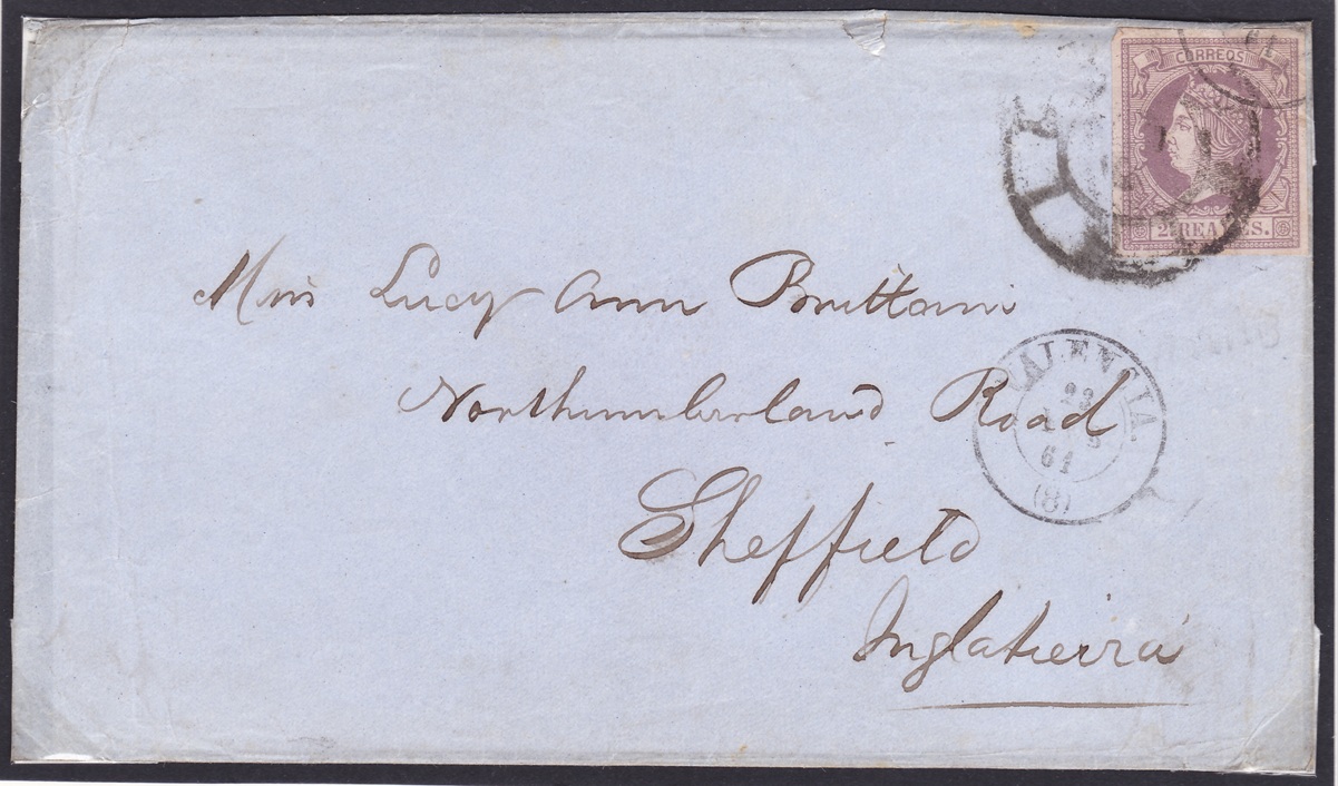 , hoy muestro una carta con el matasellos modificado de Bilbao con fecha 1/03/1867 que según mis datos y otros consultados creo se tratará del primer día de uso de este matasellos. No se si alguien por aquí la ha visto anterior.